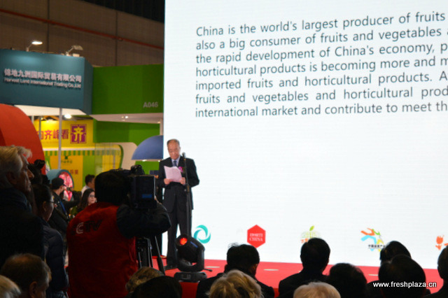 At the opening's ceremony the importance of China as a fruit and veg producer and importer was explained. // 在 开幕式上,中国作为一个水果和蔬菜生产果和进口果的重要性的解 释。