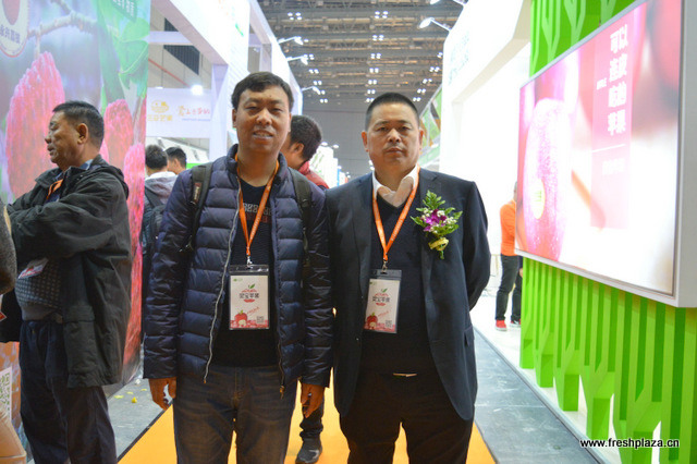 To the right, Liu Wen Hui of Hunan Greenshine Fruit, together with Summer Melon's Sales Manager Fan Zhiqiang // 右边是湖南绿晟蓝果品有限公司的董事长刘文辉和夏乐精品瓜业协 会理事、夏乐农业科技开发有限公司销售经理樊志强