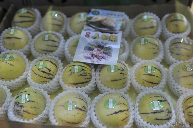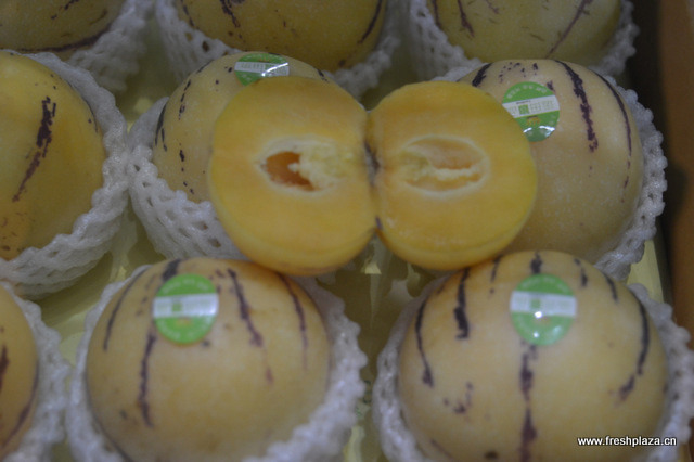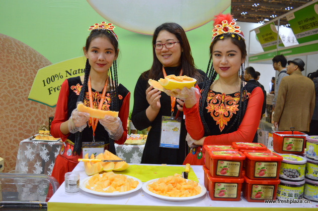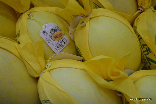 Chinese Cantaloupe melons under the Sun Kissed melon brand // 来自新疆的深圳市西域花果山衣产品发展有限公司西域花 果山香妃蜜瓜