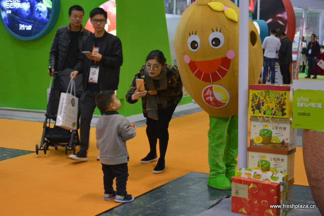 Kevin Au Yeung of RKG Asia has brought the Dori, an Italian kiwifruit variety and brand, to the exhibition, where it regenerated curiosity and interest. The first shipments of Dori arrived in Shanghai in the middle of November // 爱奇果园亚洲有限公司的Kevin Au Yeung为展会带来 了Dori,Dori是一个意大利猕猴桃品种和品牌,它引来了人们的好奇 和兴趣。首批船运的Dori在11月中旬抵达了上海。