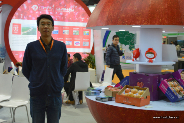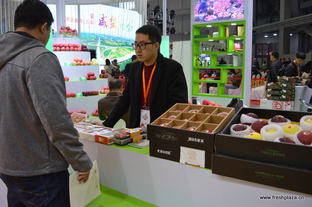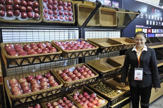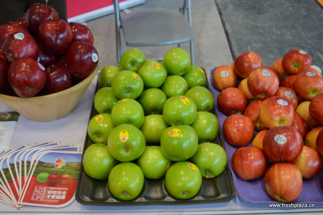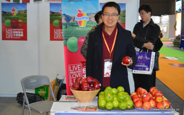 Roger Liu of the Washington Apple Commission in China. Although domestic apple brands are growing in strenght, American import apples remain a popular product on the market //在中国的美国华盛顿苹果协会的刘保军。虽然国内的苹果 品牌的实力在不断增强,但美国进口苹果仍然是市场上的畅销产品