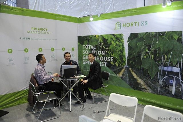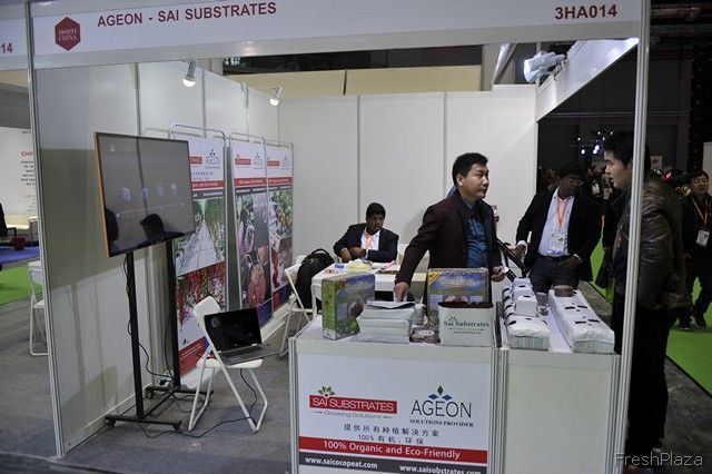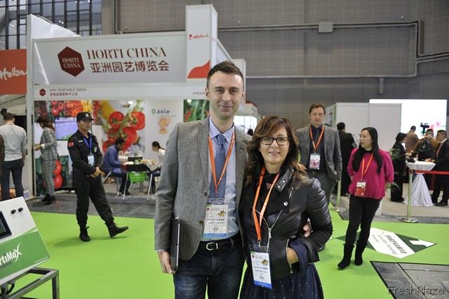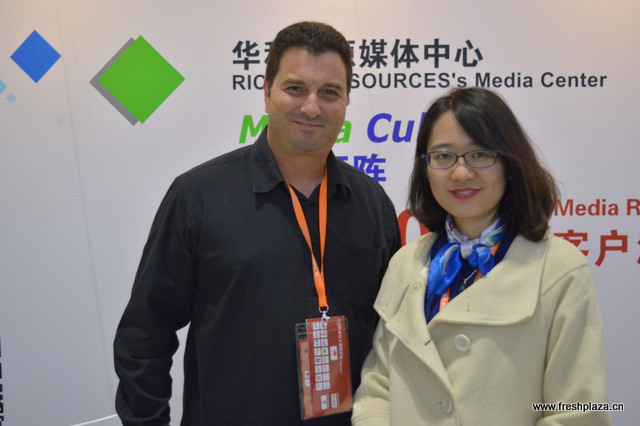 Doron Ovits from Ovits Agriculture from Egypt together with Rose Zhang, Project Manager at Richland Sources, co-organiser of the Horti China Exhibition // 来自埃及 Ovits Agriculture的Doron Ovits与华科资源的项目经理、亚洲园 艺博览会的联合组织者Rose Zhang一起