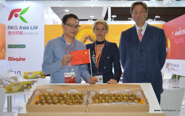 Kevin Au Yeung of RKG Asia together with Daniela Ballatore and Paolo Carissimo. RKG Asia is currently marketing the Dori in China, an Italian kiwifruit brand // 爱奇果园亚洲有限公司的Kevin Au Yeung和Daniela Ballatore 和Paolo Carissimo一起。爱奇果园亚洲有限公司目前在中国营销 Dori,Dori是一个意大利猕猴桃品牌