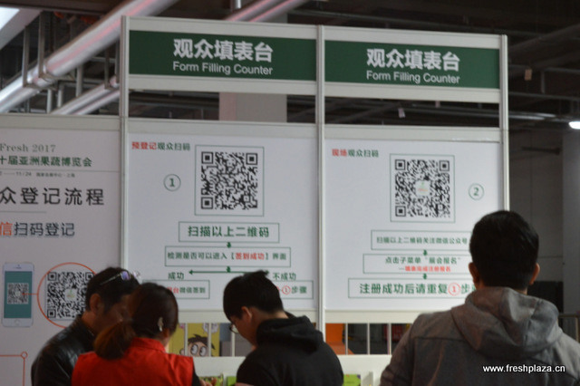 Visitors can sign up online to enter // 第十届亚洲果蔬博 览会观众填表台前的拥挤人群