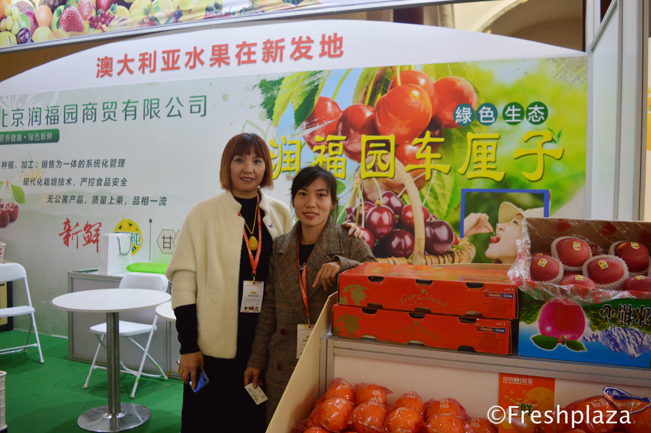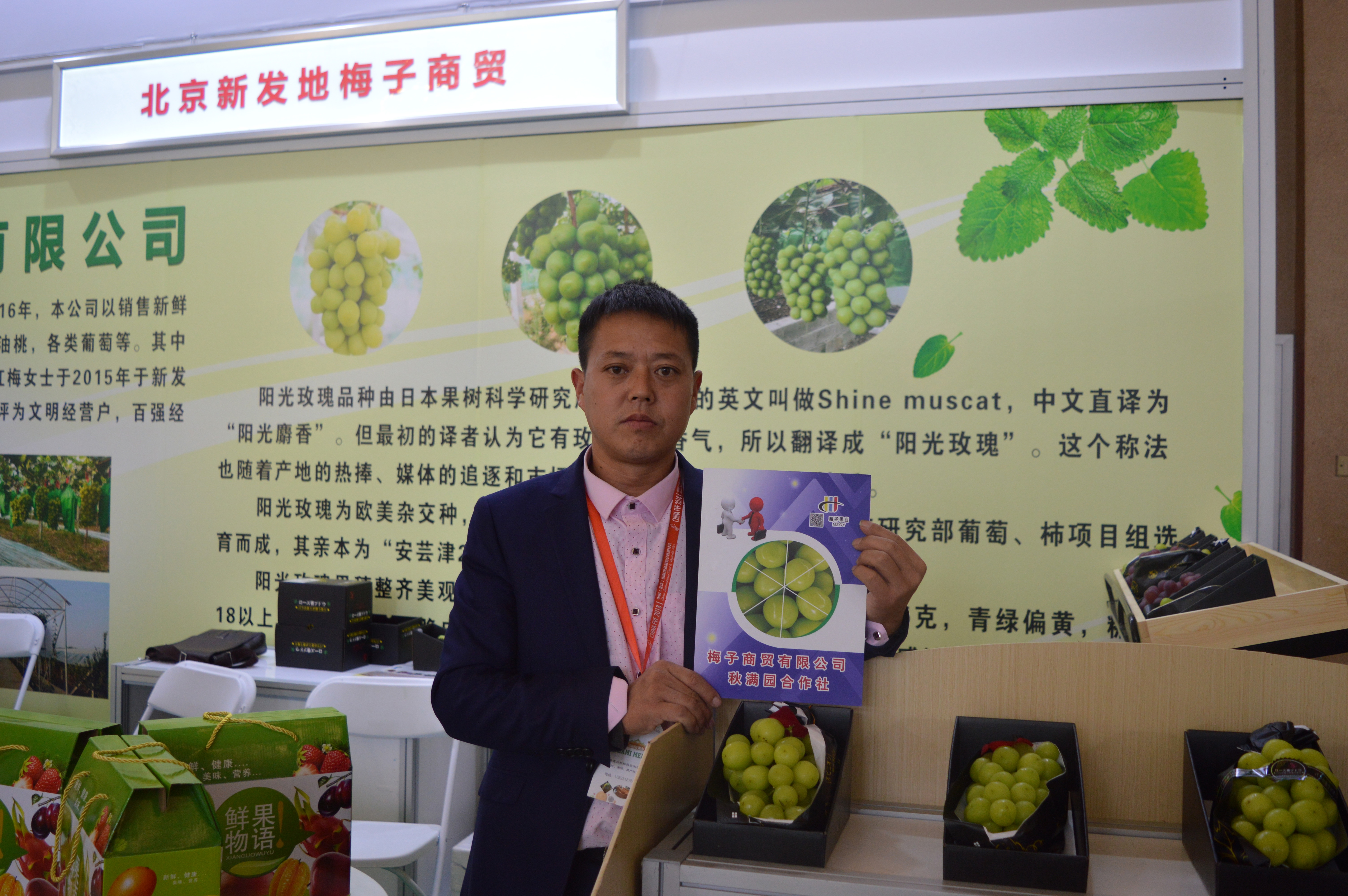 Liu Xinpo from King of cherry of Xinfadi. They import Australian cherries, sell Gansu apples, gan nan navel orange and have a 3000 mu cherry planting base. // 来自北京新发地润福园商贸有限公司的董事长刘新玻,他们进口澳洲樱桃,出售甘肃苹果,赣南脐橙,并有3000亩樱桃种植基地。