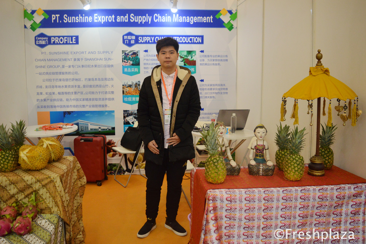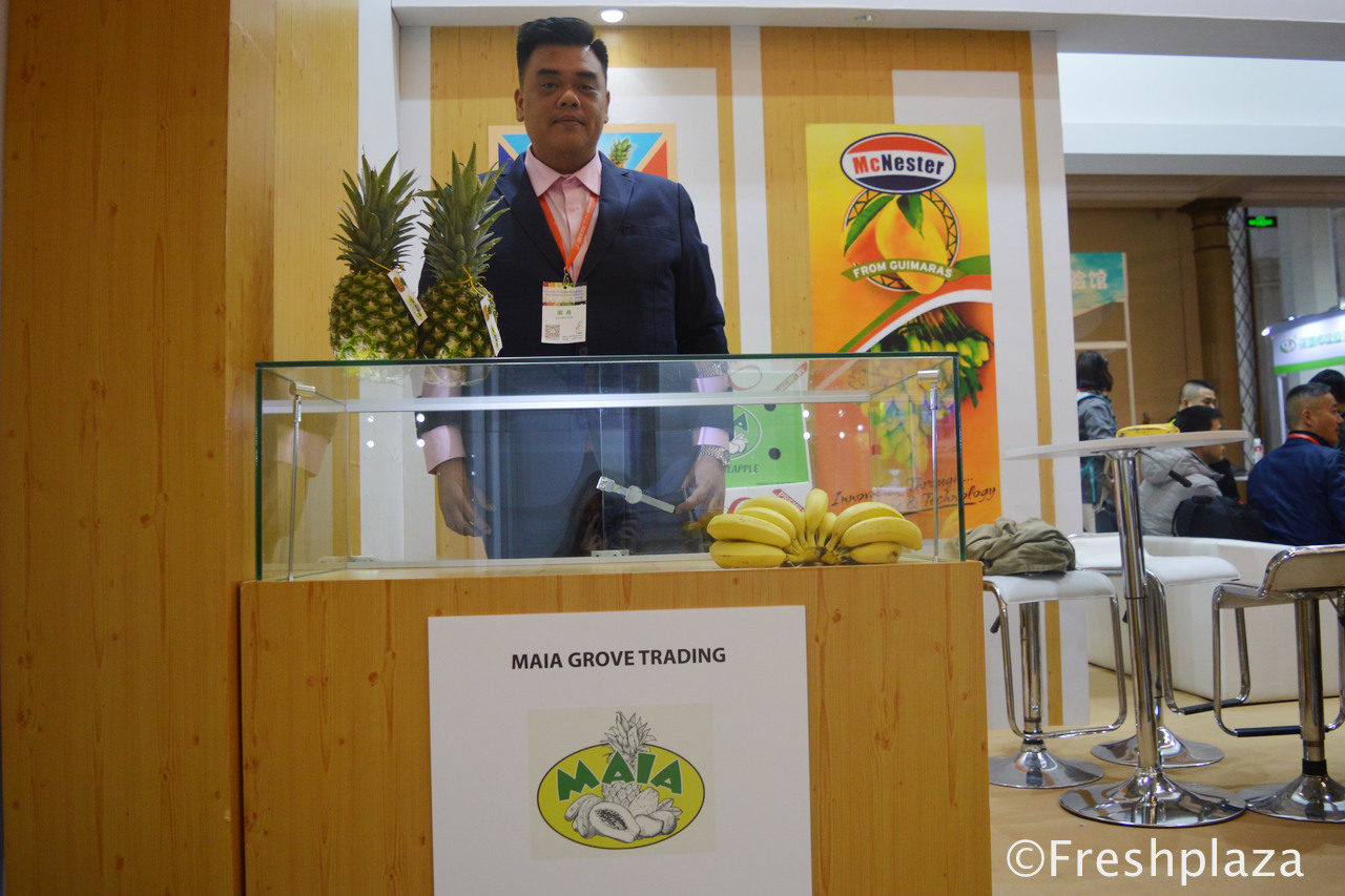 Jeffrey C. Tan from Maia Grove Trading. They first traded fruits locally, but now they are expanding to export fresh fruits from the Philippines. // 来自Maia Grove Trading的Jeffrey C. Tan。他们首先在本地进行水果交易,但现在他们正在扩大从菲律宾出口新鲜水果。