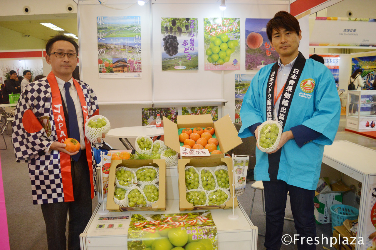 Wuyang Zhou (Joe) , Shohei Naito, Sheng Wei from Nihon Agri, INC.. Japanese export company for premium fruits. Export to Thailand, Hong Kong, Taiwan, Filippines and Malesia. // 来自Nihon Agri, INC.的周无央,内藤祥平和韦晟。这家日本出口公司出口优质水果到泰国、香港、台湾、菲律宾和马来西亚。
