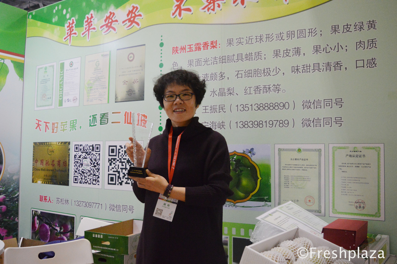 Huang Fanfan from Luochuan MeiYuGao Biotechnology Co., Ltd, expert company in apple agricultural services, cold chain logistics and marketing. // 洛川美域高生物科技有限责任公司 , 一家以苹果农资服务、冷链运输、市场营销为一体的苹果全产业链企业。