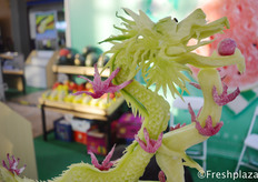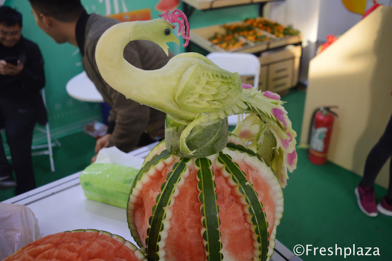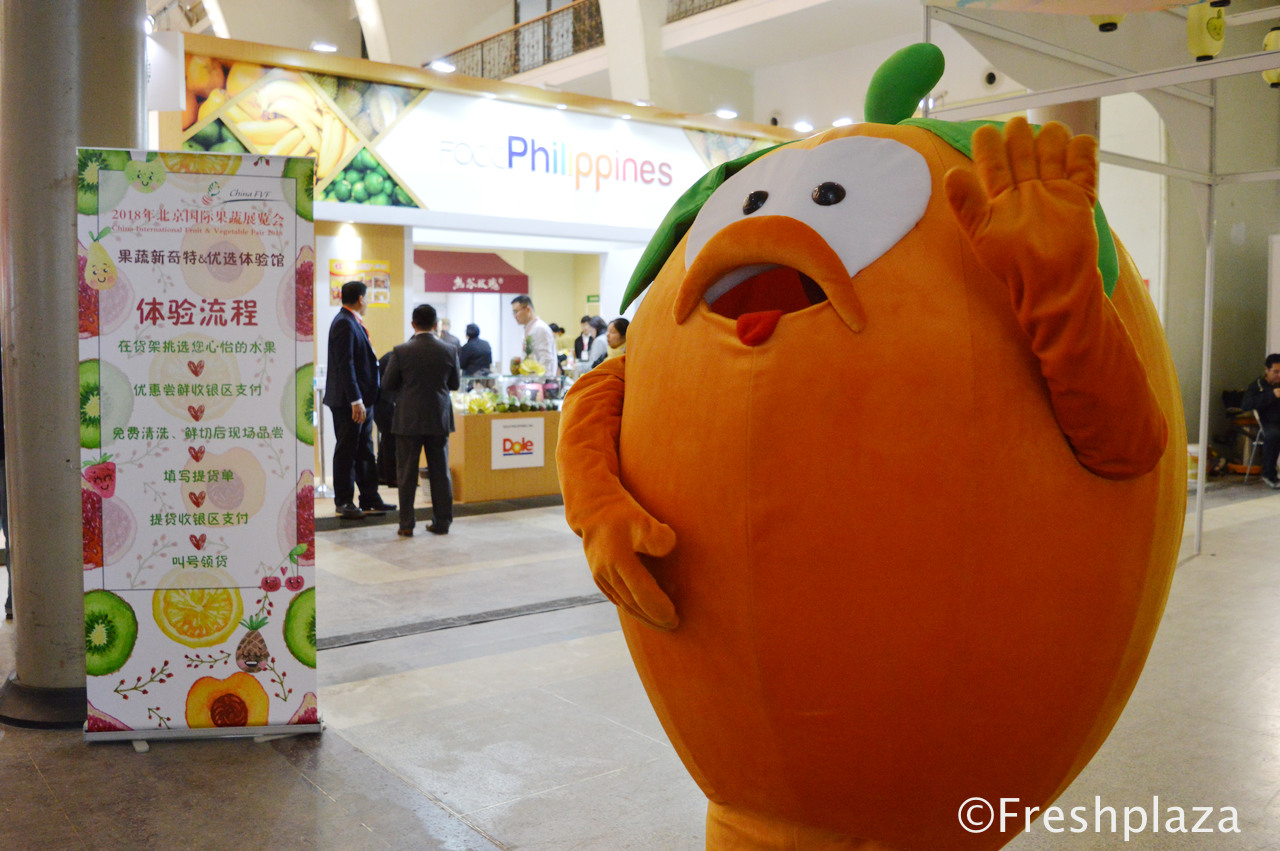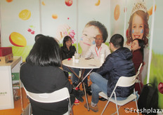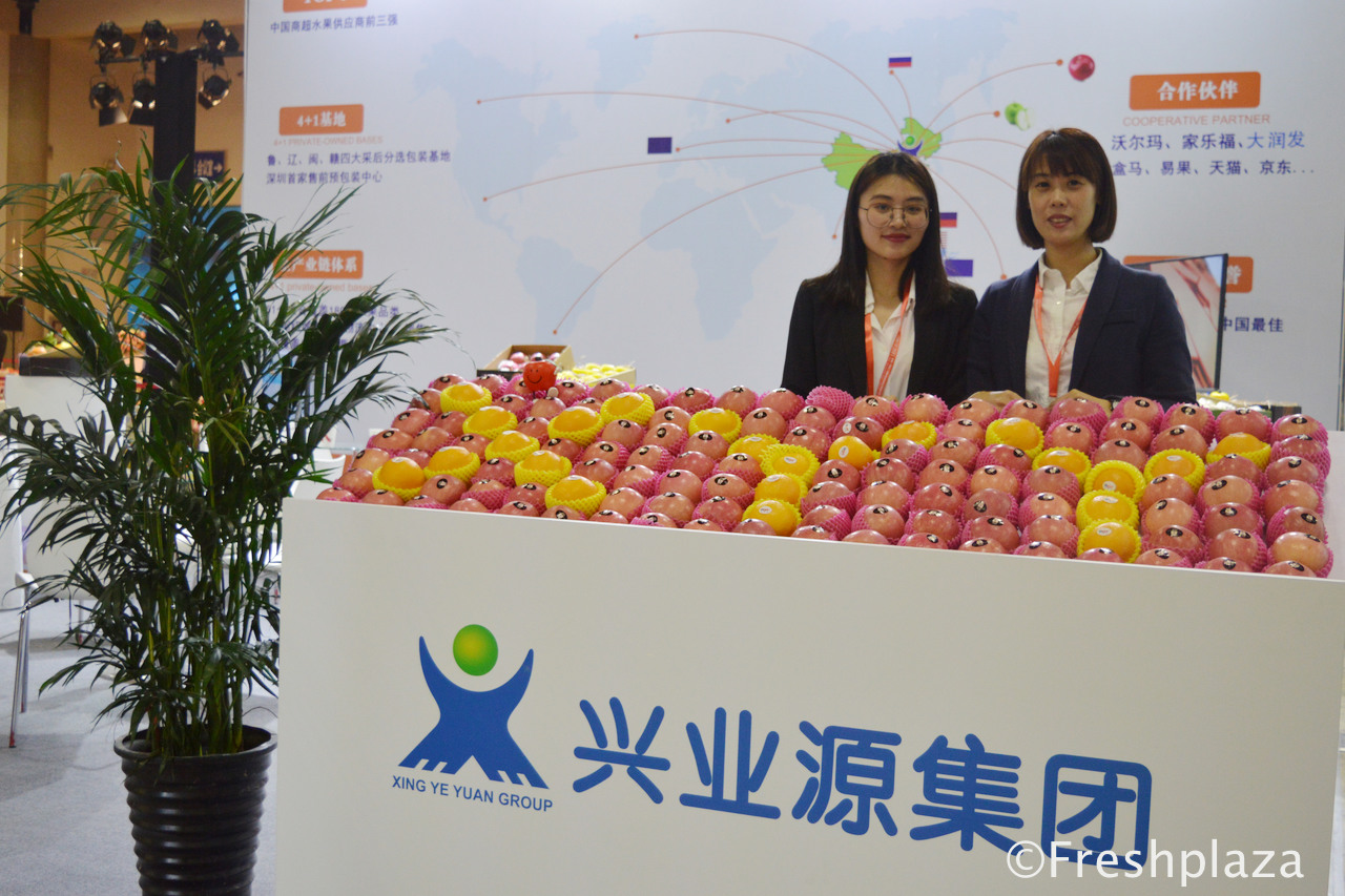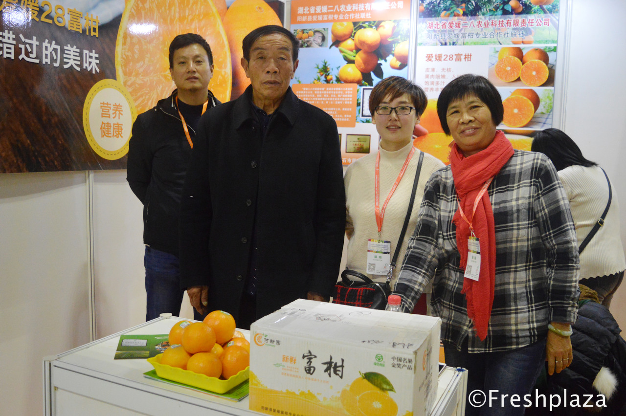Beijing Qifan Youbao Shangmao Company, with their beautiful stand full with Fujian pomelos. // 北京奇帆柚宝商贸有限公司,他们漂亮的展位摆满了福建柚子。
