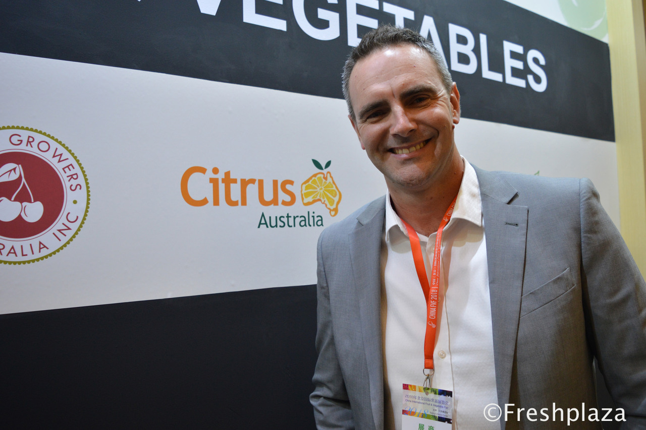 Ben Cant from Citrus Australia, they export large amounts of orange and mandarin to China, Taiwan and Hong Kong. They represent 1500 Australian growers with 1500 hectares of fields for their export. // 来自澳大利亚柑橘协会的Ben Cant,他们出口大量橙子和橘子到中国,台湾和香港。他们代表1500名澳大利亚种植者,占地1500公顷的出口种植基地。