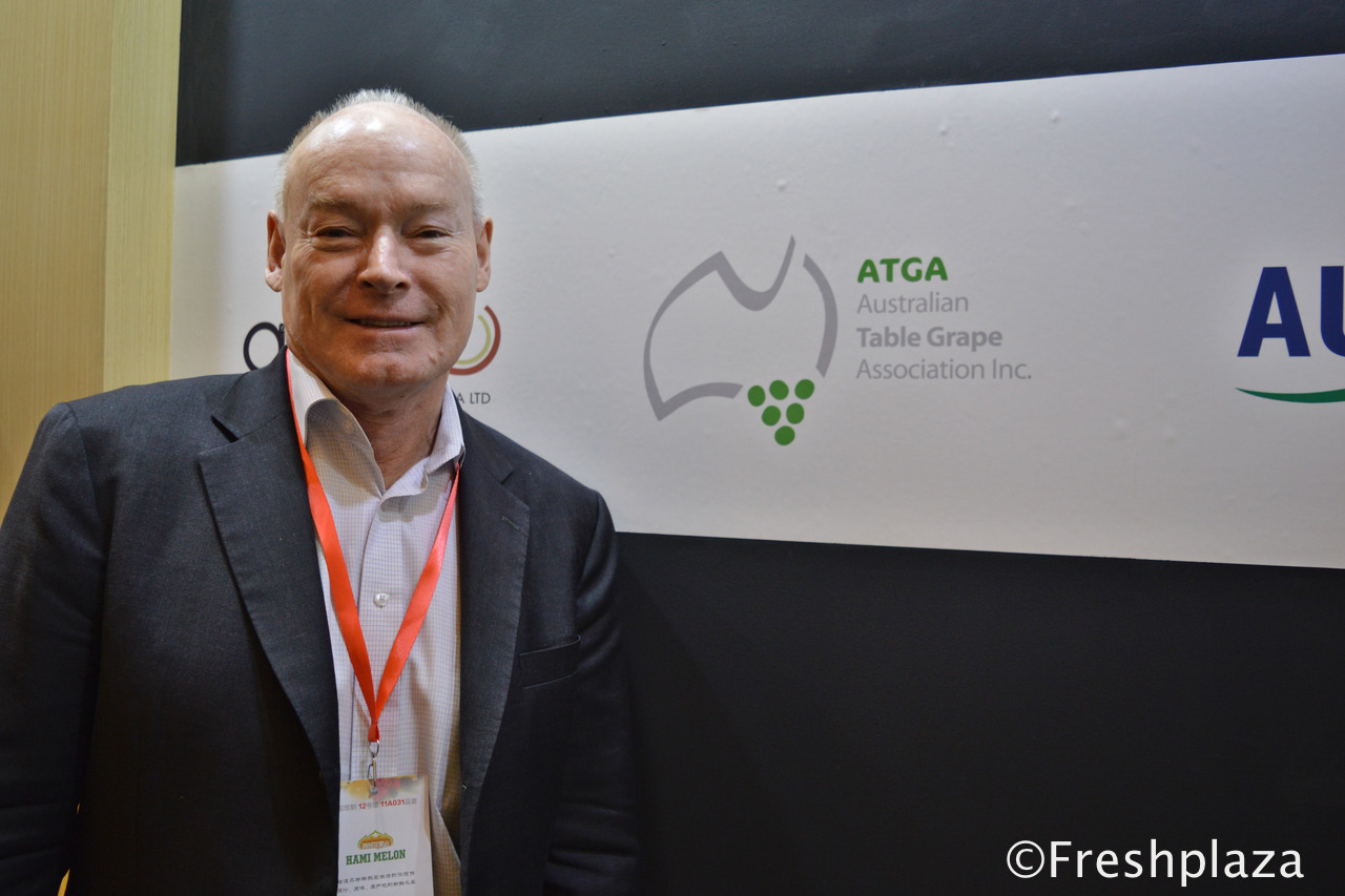 Jeff Scott from Australian Table Grapes Association. They export table grapes and citrus to China and many other countries in the world. 40% of their exports go to China. // 澳大利亚鲜食葡萄种植者协会的总裁Jeff Scot。他们出口食用葡萄和柑橘到中国和世界上许多其他国家。他们产品的40%被出口到中国。