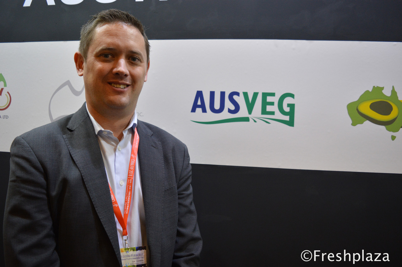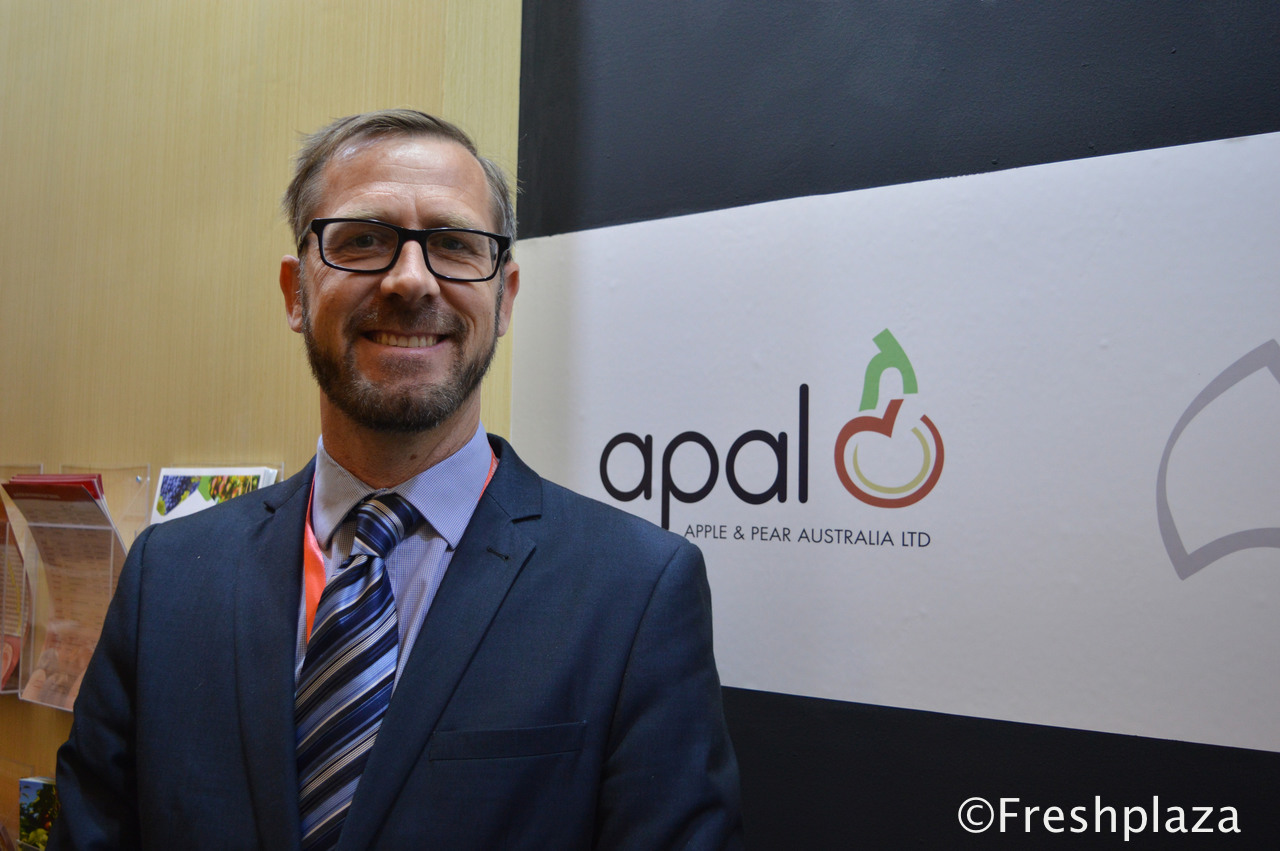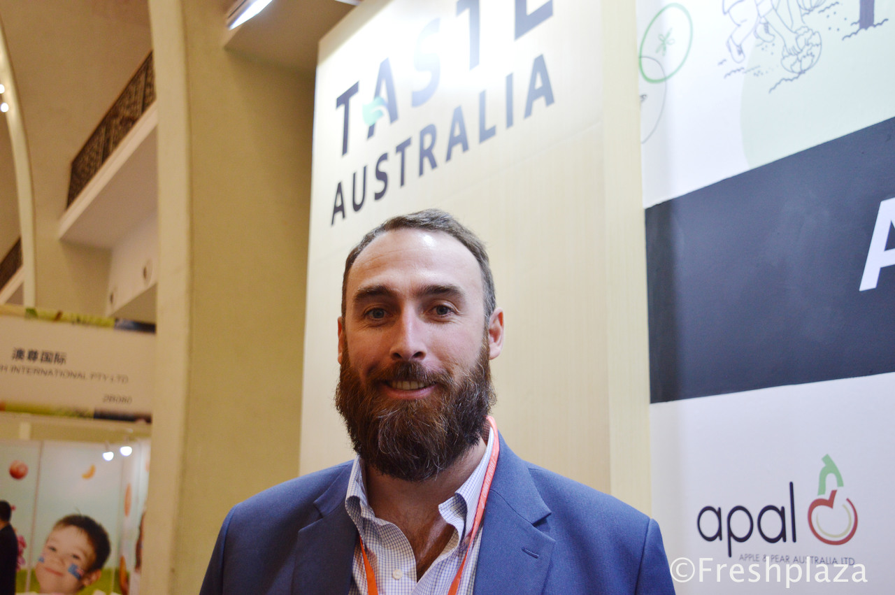 Andrew Mandemaker from Apple & Pear Australia Ltd. Their apples and pears cannot enter China yet, but he hopes that in the future the governments of both countries can come to an agreement. If he could choose, he would like to start with introducing the Pink Lady apple to China. // 苹果和梨澳大利亚有限公司的集团质量与创新负责人Andrew Mandemaker。他们的苹果和梨还不能进入中国,但他希望将来两国政府能达成一致。如果他可以选择,他希望先把Pink Lady苹果推广到中国。