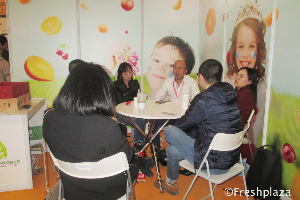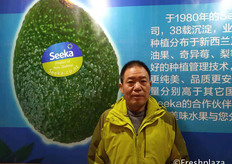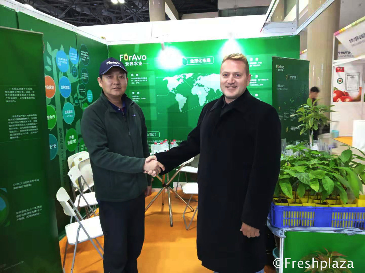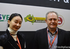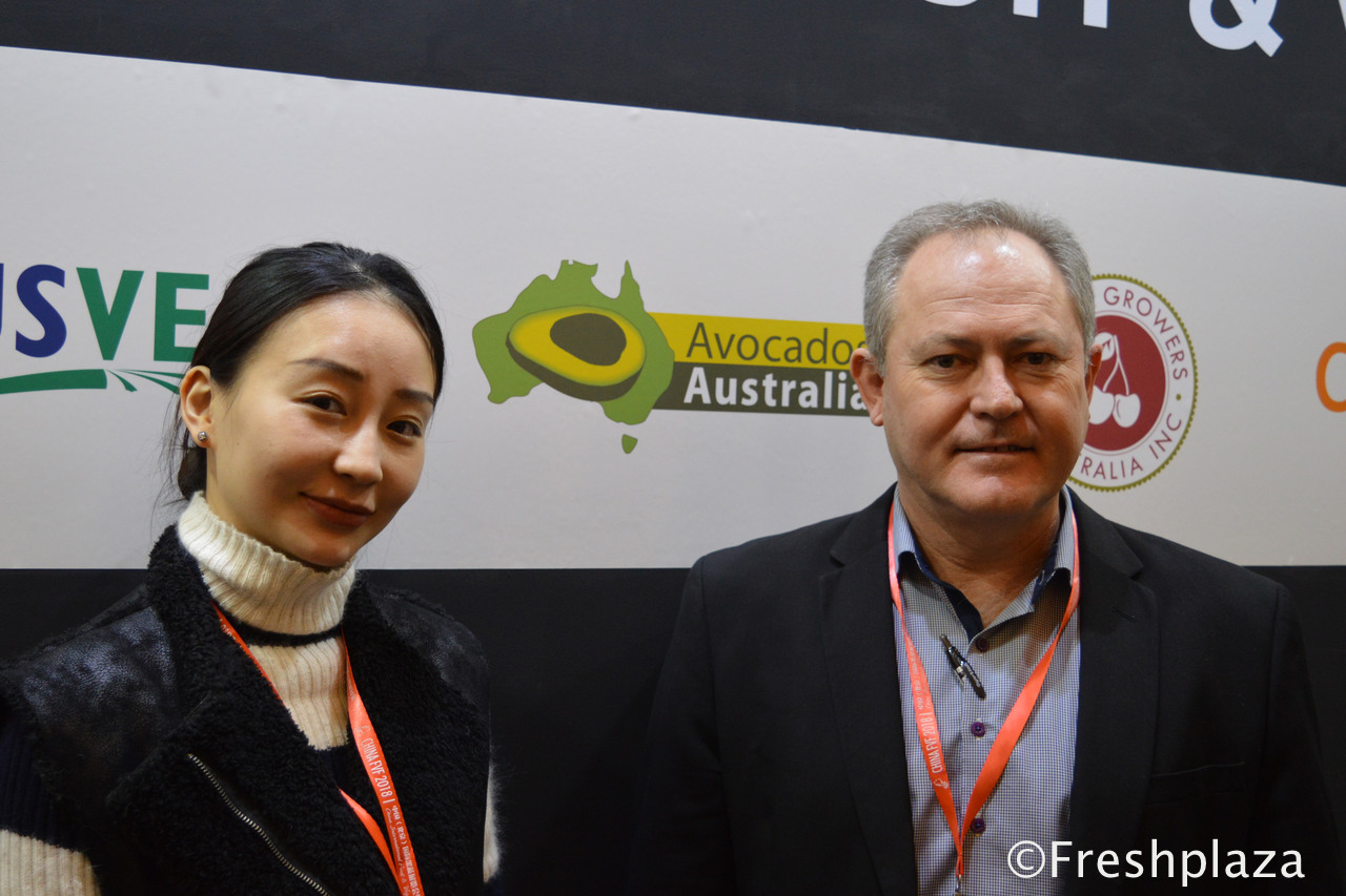 John Tyas and his colleague from Avocados Australia Limited (AAL), which is the representative industry body for the Australian avocado industry. Australian avocados do not have access yet to the Chinese market, though they hope with their presence in this exhibition, they can show their commitment and support to an export agreement between their countries. 来自Avocados Australia Limited (AAL)的John Tyas和他同事,该公司是澳大利亚鳄梨产业的产业主体代表。澳大利亚的鳄梨还没有进入中国市场,但他们希望参加这次展览,这能够表现他们对两国之间出口协议的承诺和支持。