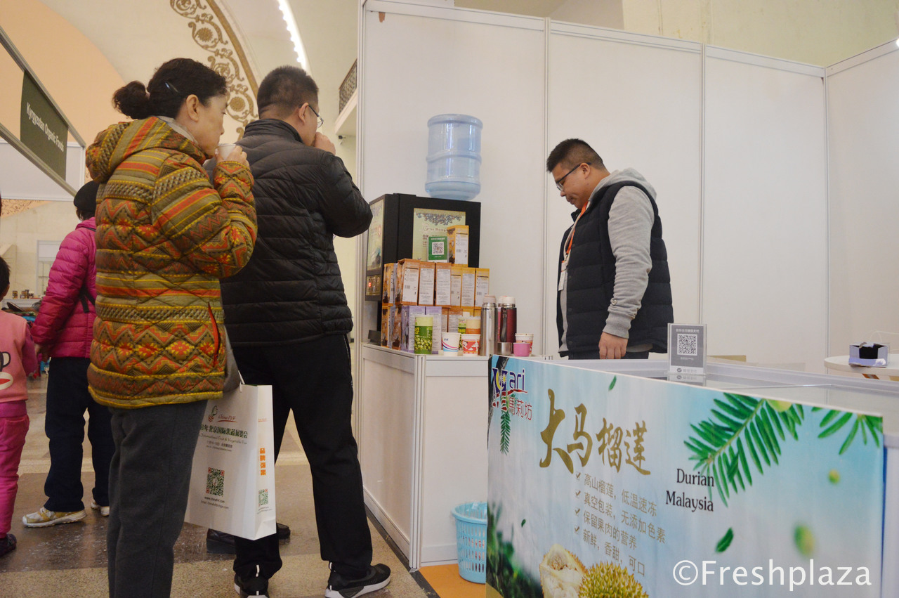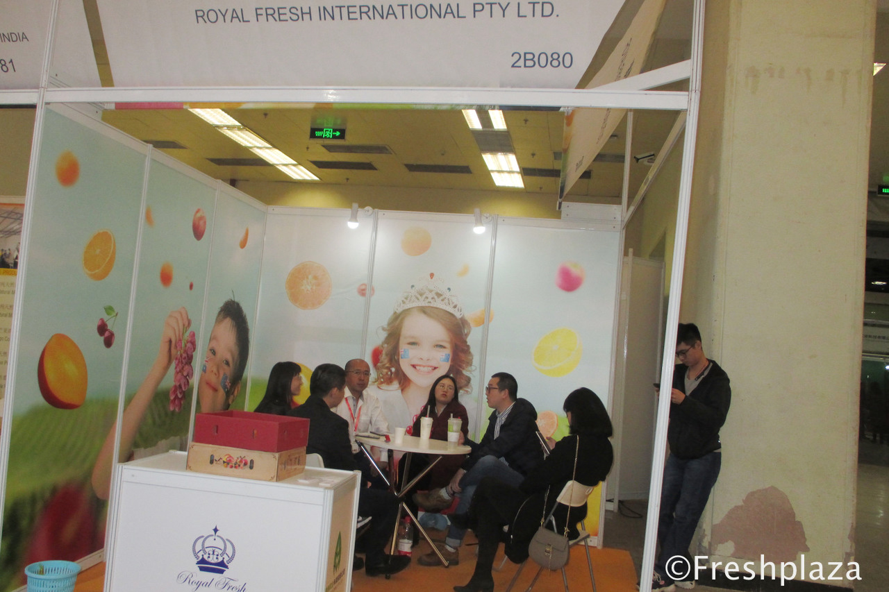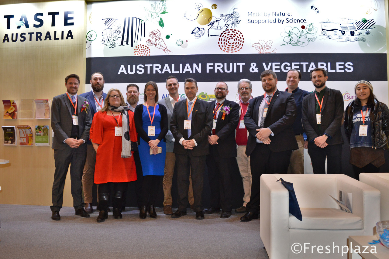 John Tyas and his colleague from Avocados Australia Limited (AAL), which is the representative industry body for the Australian avocado industry. Australian avocados do not have access yet to the Chinese market, though they hope with their presence in this exhibition, they can show their commitment and support to an export agreement between their countries. 来自Avocados Australia Limited (AAL)的John Tyas和他同事,该公司是澳大利亚鳄梨产业的产业主体代表。澳大利亚的鳄梨还没有进入中国市场,但他们希望参加这次展览,这能够表现他们对两国之间出口协议的承诺和支持。