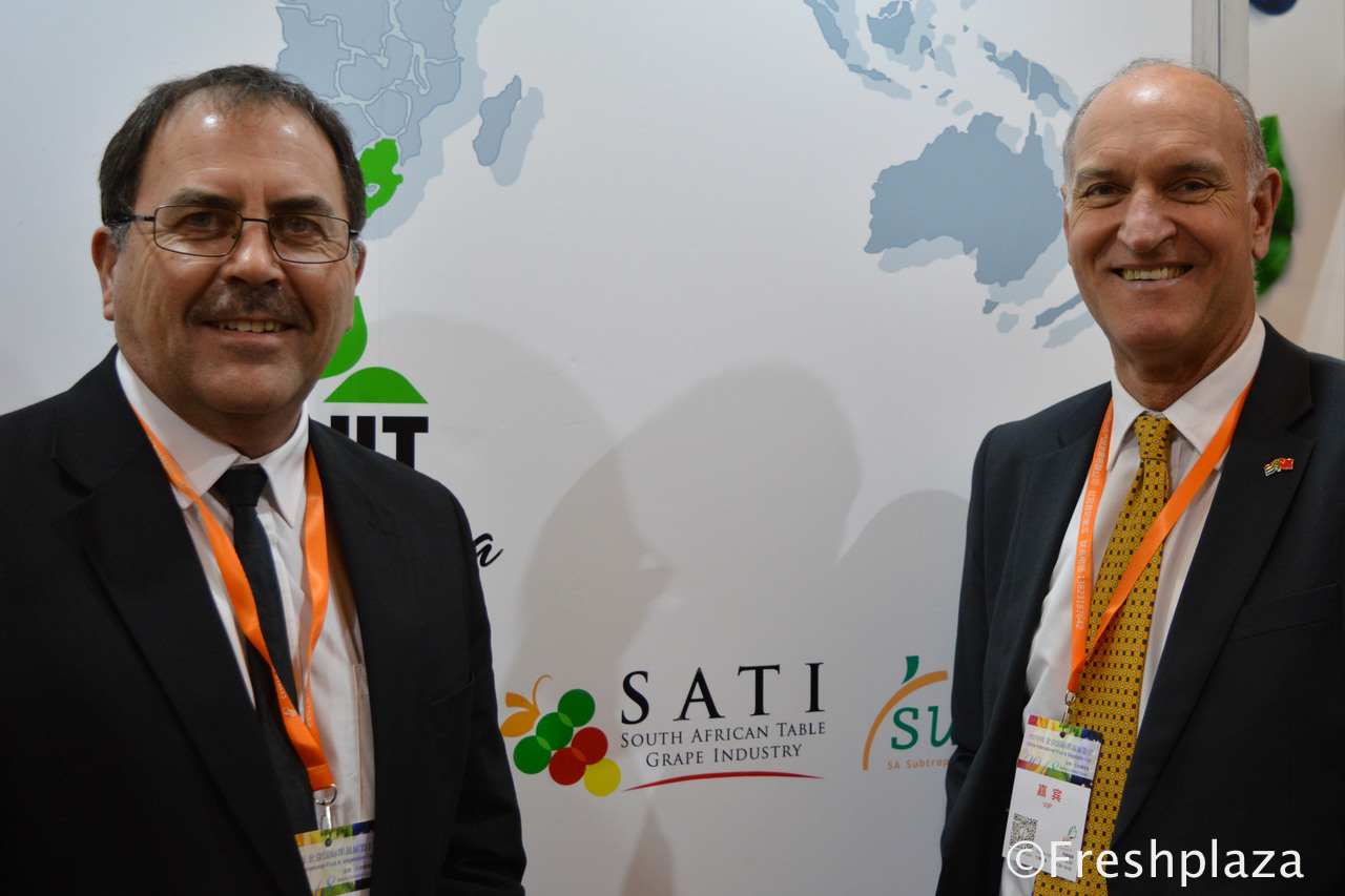 Willem Bestbier and Dawie Moelich from South African Table Grape Industry (SATI). Their company represents the South African table grape industry. // 南非食用葡萄产业协会 (SATI)的Willem Bestbier和Dawie Moelich。他们的公司代表南非的食用葡萄产业。