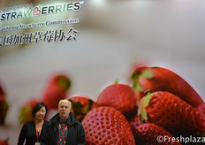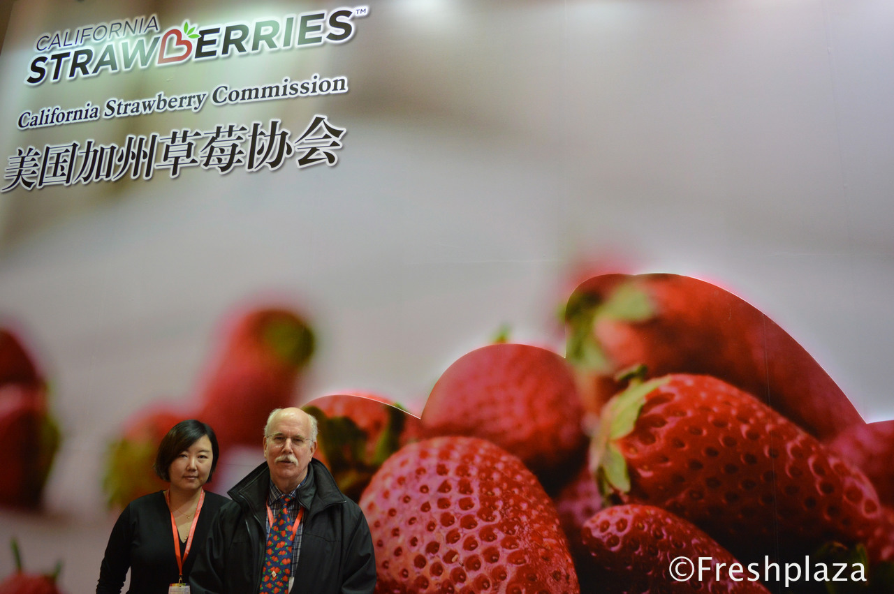 Mack Ramsay and Flora Zhang from California Strawberry Commission. They represent all strawberry growers and shippers California. In 2016 they got access to China and in 2017 the first shipment by air was successfully concluded. Other countries they export to are Japan, Mexico, Canada, Middle East and Korea. // 美国加州草莓协会资深中国事务顾问Mack Ramsay和张琰。他们代表加利福尼亚所有的草莓种植者和托运人。在2016年,他们获得至中国市场的准入权,在2017年,第一批空运成功。他们出口的其他国家有日本、墨西哥、加拿大、中东和韩国。
