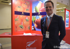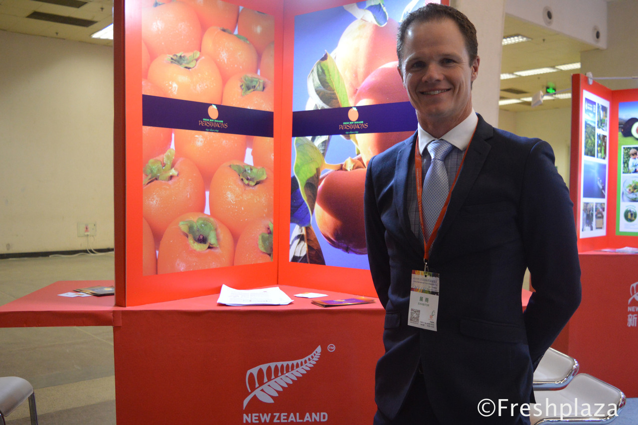 Duane Wells from Fresh New Zealand Persimmons. They represent the persimmon industry from New Zealand. Since two years ago they can export to China, which is an advantage because persimmons are quite important in the Chinese culture. // 来自新西兰新鲜柿子协会的Duane Wells。它们代表了新西兰的柿子产业。自从两年前,他们可以出口到中国,这是一个优势,因为柿子在中国文化中非常重要。