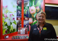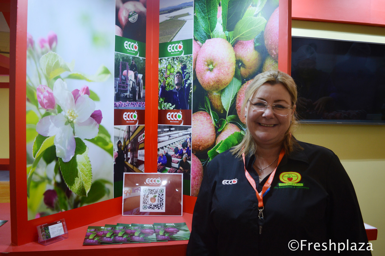 Jamiee Burns from ECCO, a New Zeald apple and pear company. They have a new variety that could be interesting for the Chinese market, it is called, the Sunglow. // 来自一家新西兰苹果和梨公司ECCO的Jamiee Burns。他们有一个对中国市场来说可能很有趣的新品种,它被称为Sunglow。