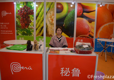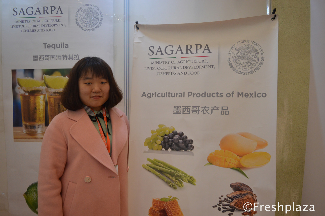 Wang Ziying showing all the fruits from Pro México Trade and Investment. // Wang Ziying展示墨西哥投资贸易局的的全部水果。