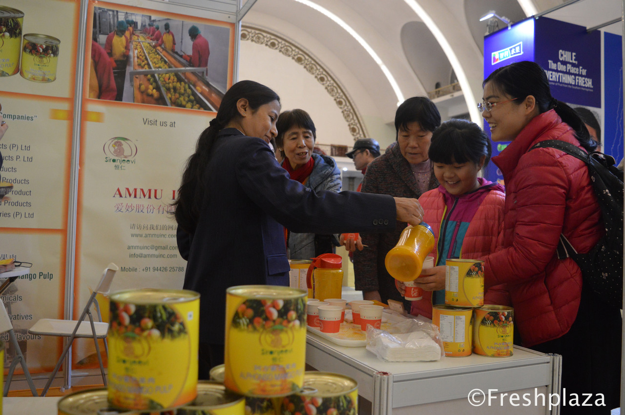 AMMU INC, promoting mango FruitPulp and Fruit purees from India by the visitors. // 爱妙股份有限公司,该公司促销来自印度的果肉和果泥。