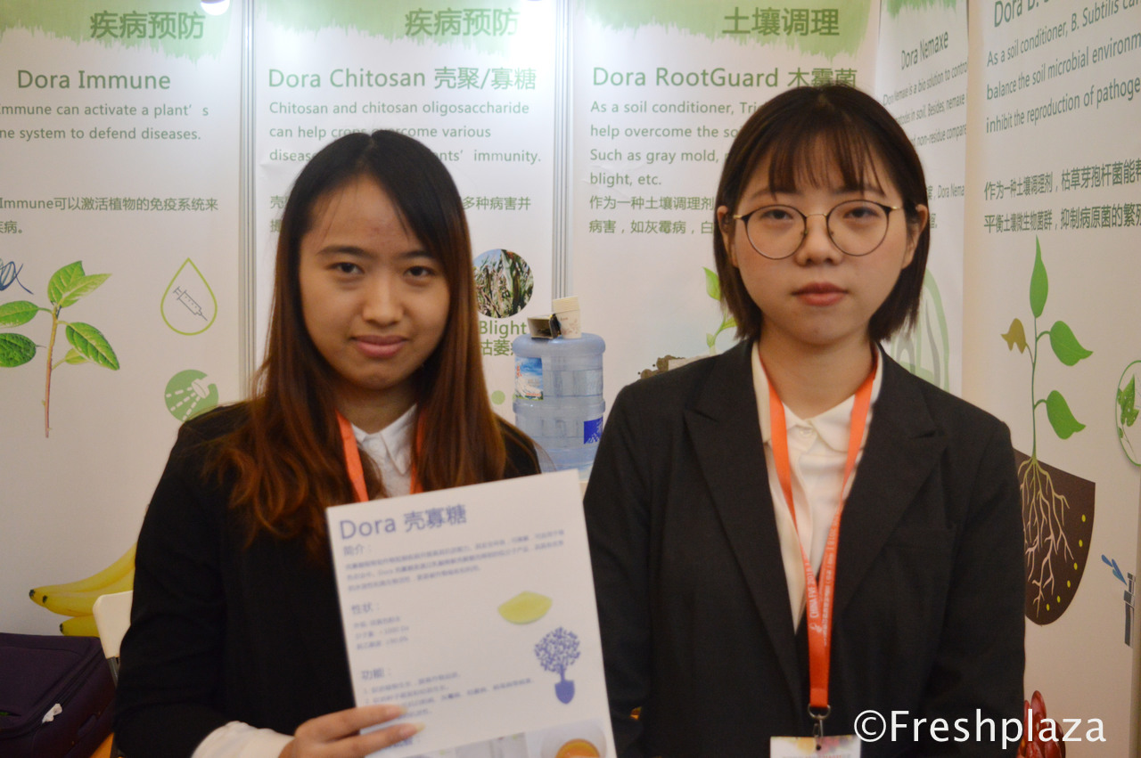 Jill and Jessie from Suzhou DORA Agri-tech Co. Ltd., plant nursery company. Provides help with growing crops more efficiently. // 苏州朵拉生态农业科技有限公司的销售代表顾瑜和总经理徐园园。该公司是一家植物苗圃公司,帮助作物更有效地生长。