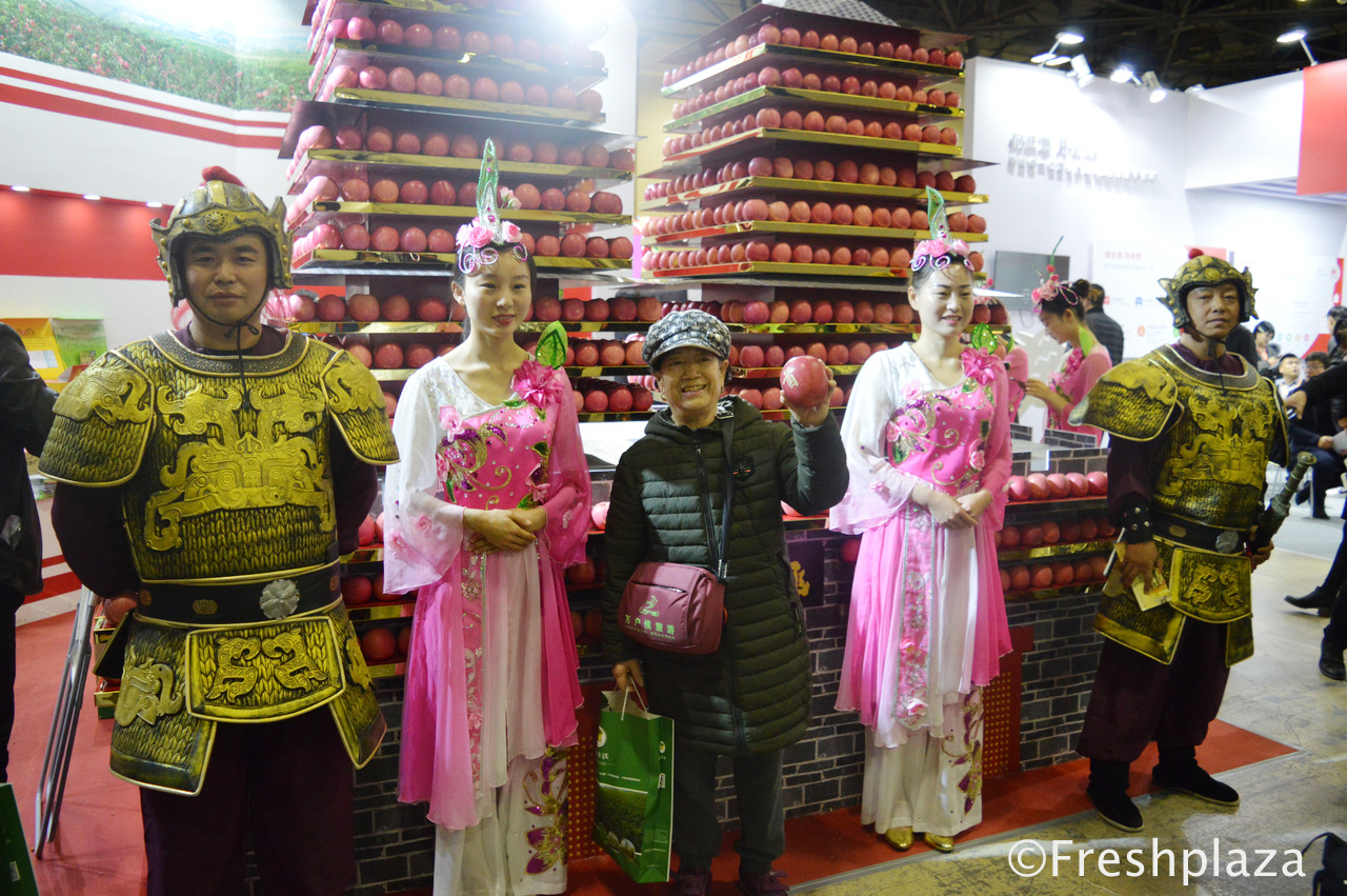 Some cool photo moment for this happy visitor at Lingbao Apple Stand. // 这位访者在灵宝苹果展位的快乐拍照时刻.