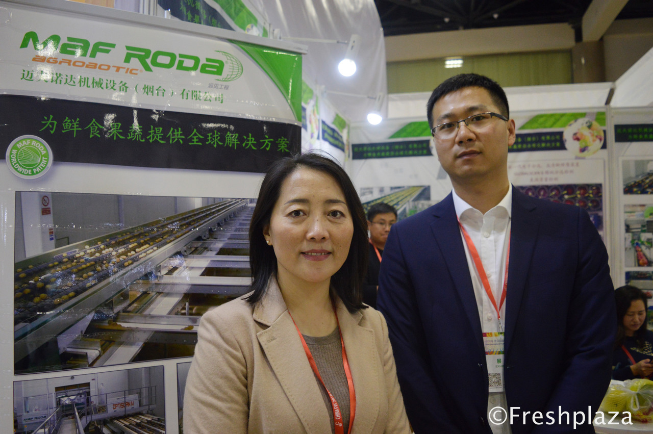 Gai Wei and Zhou Yang from MAF RODA Machinery (Yantai) Co., Ltd. They are specialized in sorting line technology. // 来自迈夫诺达机械设备(烟台)有限公司的中国区销售经理盖伟和销售工程师周杨,他们专门发展分拣生产线技术。