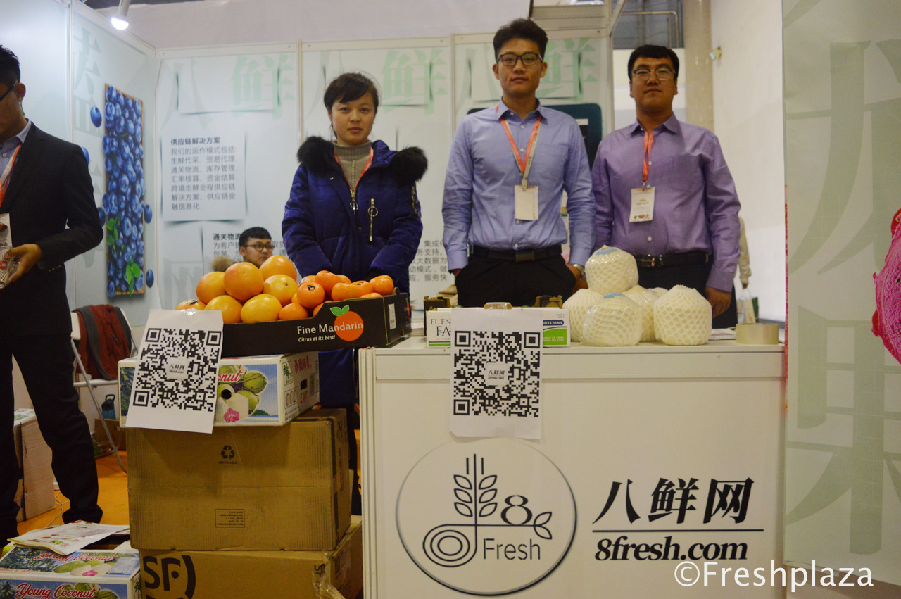 Team of 8fresh, selling all kind of imported products, like cherries and blueberries from Chile, Coconuts from Thailand. 八鲜网的团队,他们销售各种进口产品,如智利的樱桃和蓝莓,泰国的椰子。