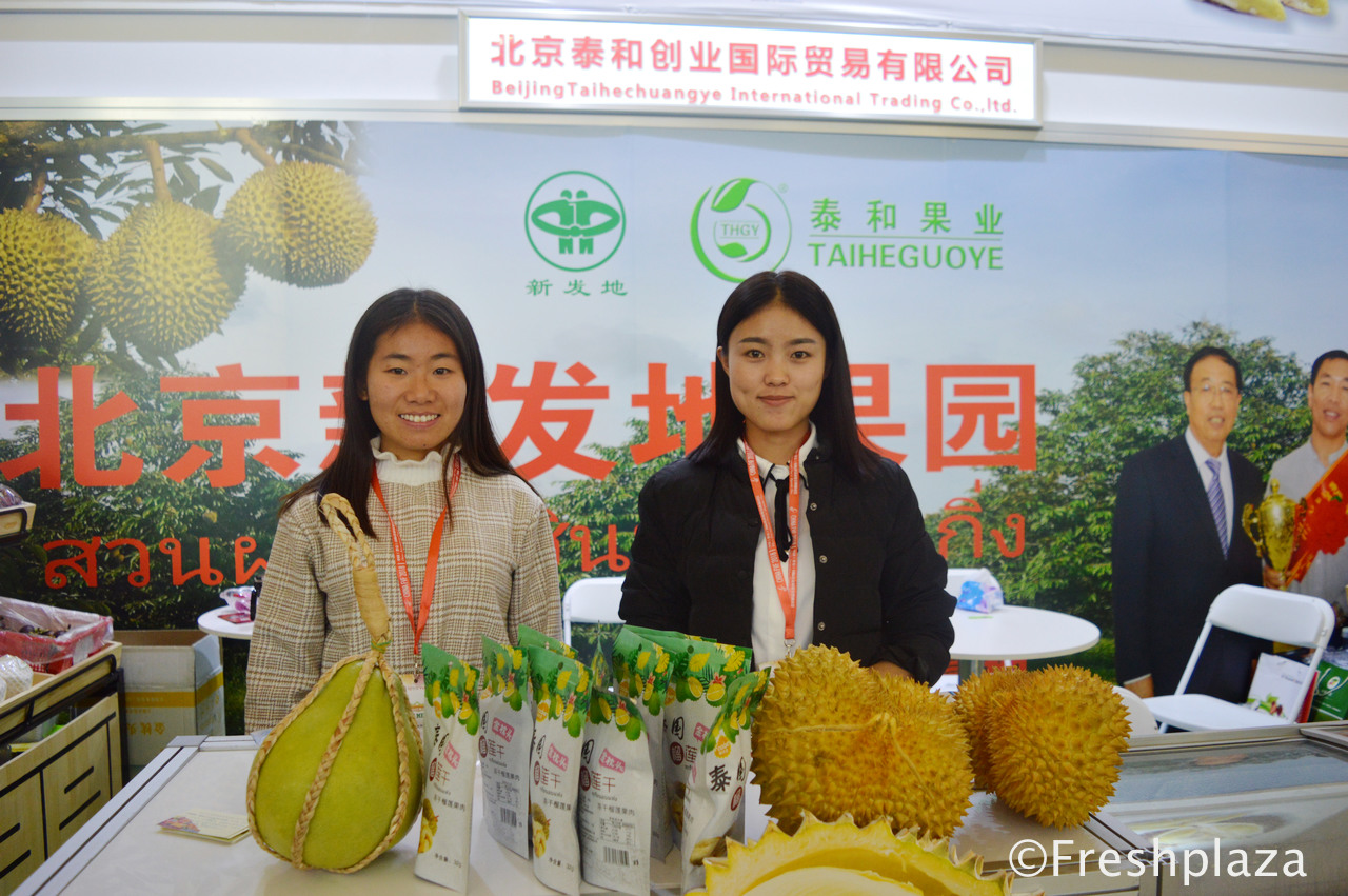 Beijing Taihechuangye International Trading Co., Ltd. They sell all kind of imported fruits, for example, Thai durian, longan, mangosteen, pomelo. // 北京泰和创业国际贸易有限公司,他们出售各种进口水果,例如泰国榴莲、龙眼、山竹、柚子。