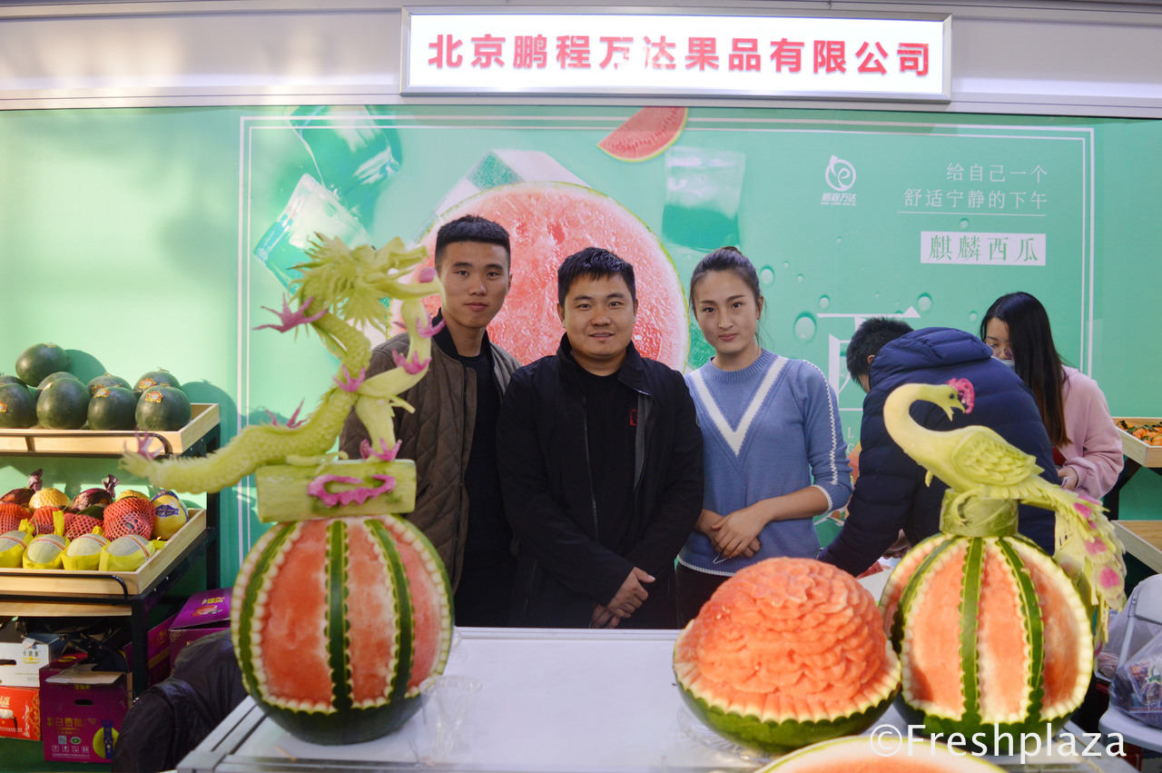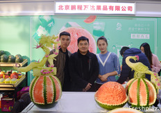 Team of Beijing Peng Cheng Wan Da Guopin Company. Their main product is watermelon and other melon varieties.// 北京鹏程万达果品有限公司的团队,其主要产品是西瓜等瓜类品种。