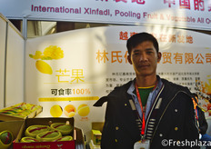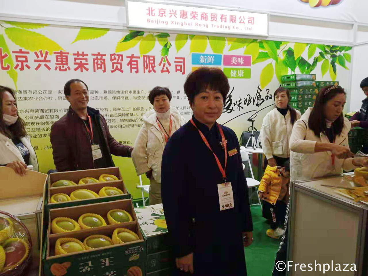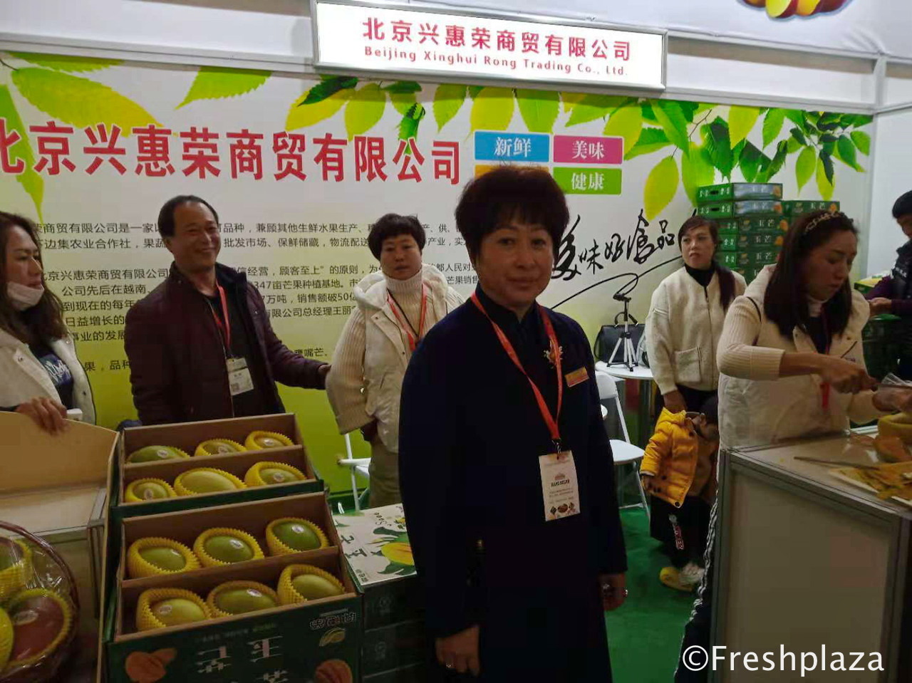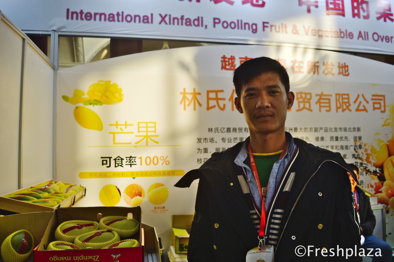 Xiao Lin from Beijing Lin Shi yi Jia Company. They sell mangoes throughout the whole year. Mangoes from Vietnam. // 来自北京林氏亿嘉商贸中心的小林,他们全年销售来自越南的芒果。