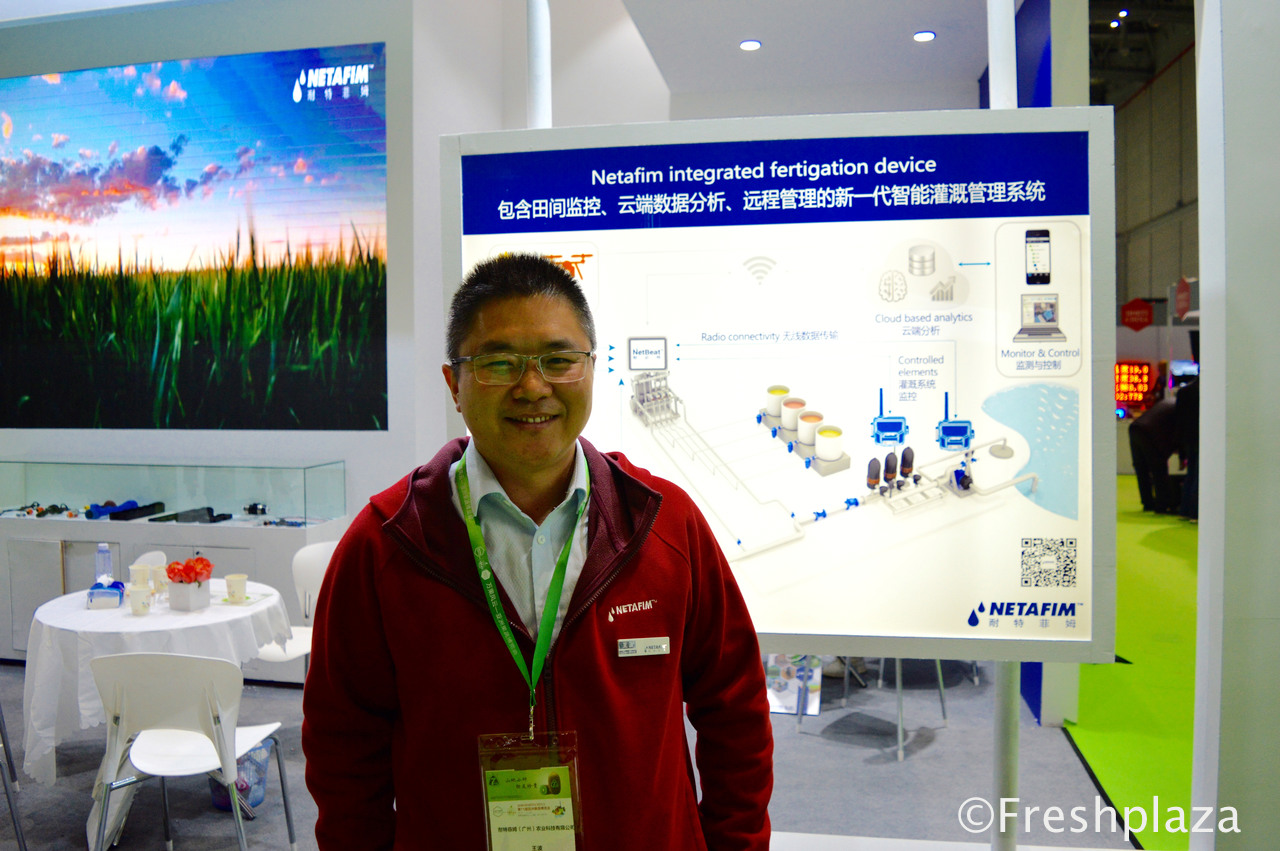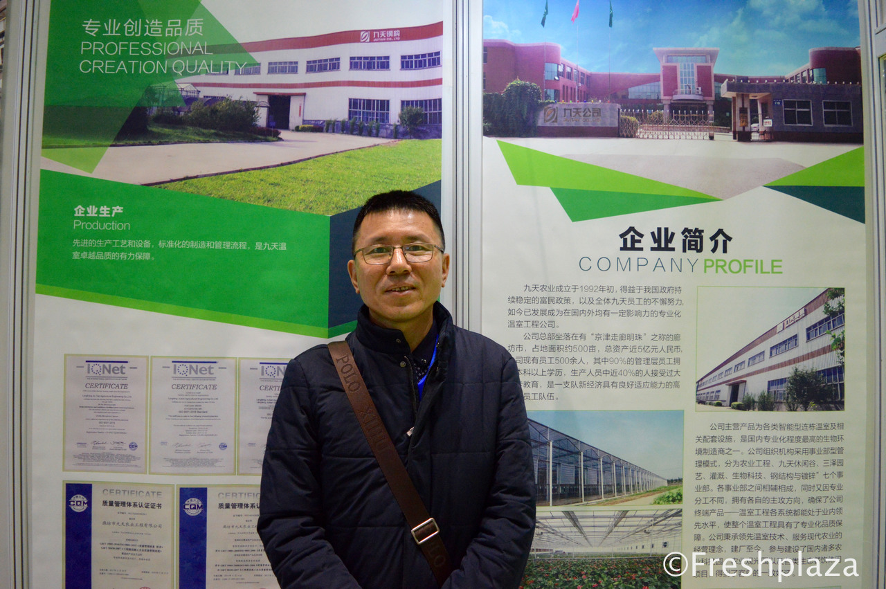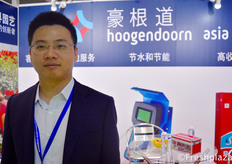 Snow Wu from Hoogendoorn Asia. Together with global partners, Hoogendoorn delivers sustainable automation solutions that seamlessly coordinate all processes and systems in horticultural organization. The modular software ensures that the available resources such as natural gas, fertilizers and water are used as efficiently as possible. 来自豪根道(北京)农业技术有限公司的销售经理吴业雄。豪根道(北京)农业技术有限公司与全球合作伙伴一起提供可持续的自动化解决方案,无缝地协调园艺组织中的所有过程和系统。模块化软件确保了可用资源,如天然气、化肥和水被尽可能有效地利用。