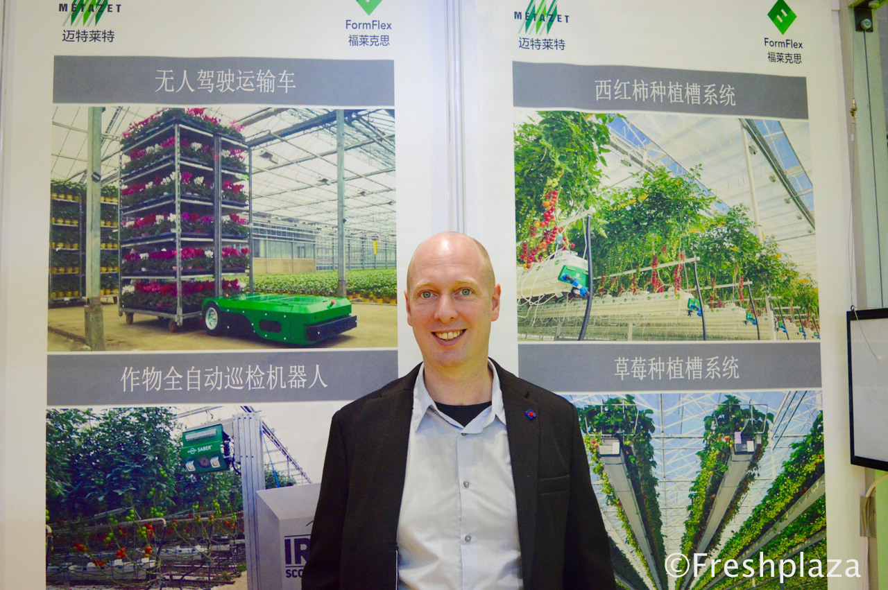 Eelco Wolthuizen from Metazet Zwethove B.V. Metazet has grown to be a global market leader in a range of cultivation and support materials for modern glasshouse horticulture according to Western standards. Metazet is able to put its extensive experience to good use in other industries. FormFlex global specialist in the development and manufacture of growing gutter systems and was one of the forerunners in on-site profiled growing racks, growing systems and growing gutters. 来自荷兰迈特莱园艺设备有限公司的王义可。荷兰迈特莱园艺设备有限公司已经成长为按照西方标准为现代温室园艺提供一系列栽培和支持材料的全球市场领导者。荷兰迈特莱园艺设备有限公司能够将其丰富的经验用于其他行业。FormFlex是开发和制造生长型排水沟系统的全球专家,也是现场仿形生长架、生长系统和生长型排水沟的先驱之一。