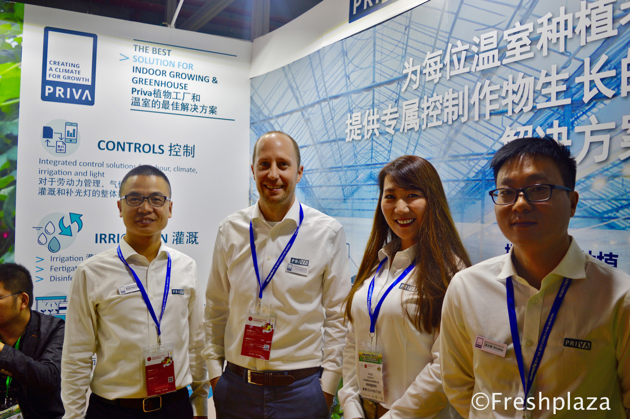 Tang Tong, Bram Koppert, Lydia Qi and Brookey from PRIVA. Priva developes and supplies sustainable technologies for the control of indoor environments within horticulture and the built environment. 来自PRIVA的唐通,Bram Koppert,齐文育,袁永惠 Priva致力于对温室和楼宇内部气候的研究控制,提供可持续发展技术。