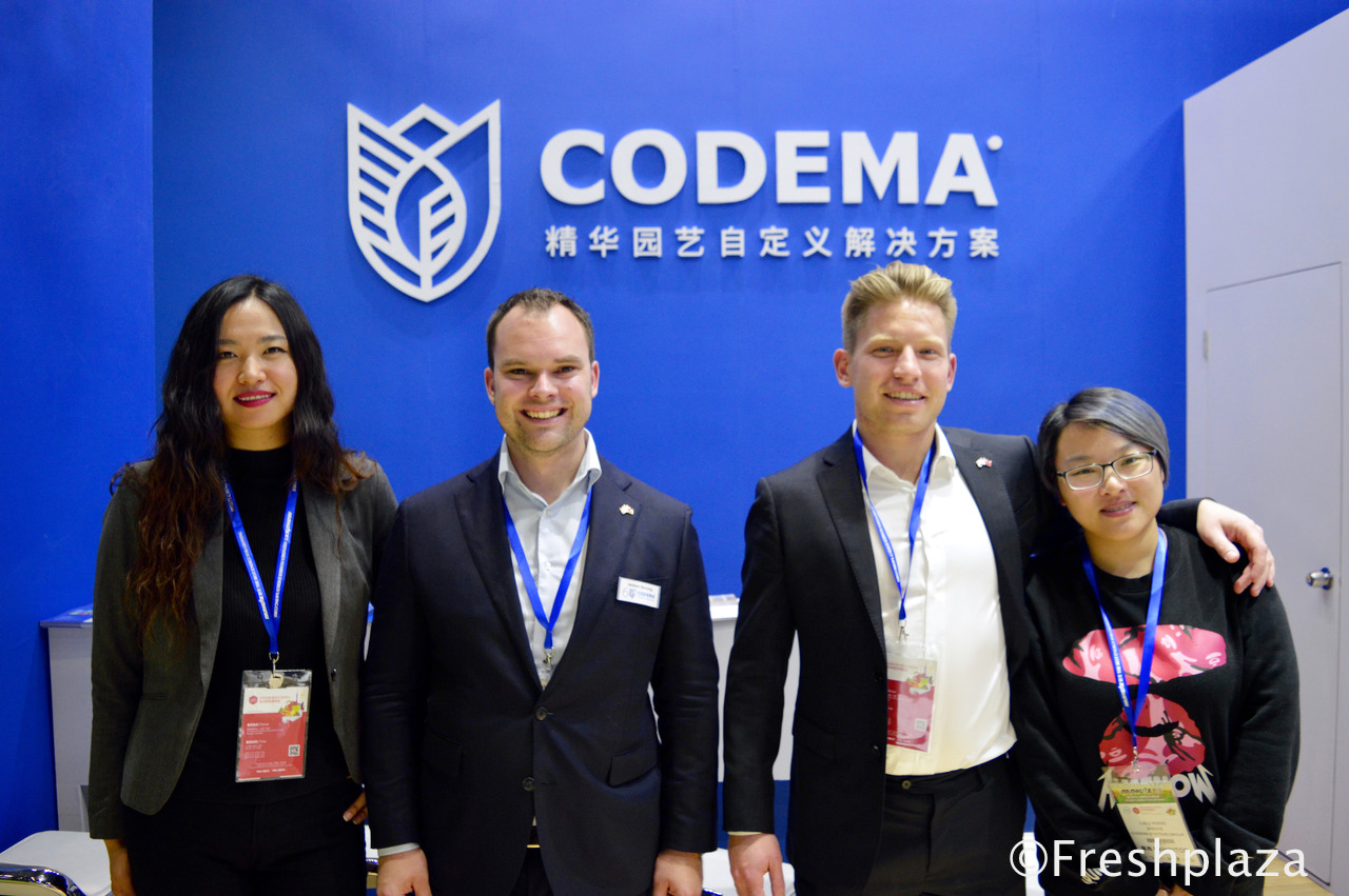 Nana Wang, Jelmer Huizing, Just Roos and Lulu Wang from Codema. They provide essential custom-made horticulture solutions worldwide. 来自科迪马系统集团的杨东娜、耶尔马、Just Roos和Lulu Wang。他们在世界范围内提供定制的园艺解决方案。