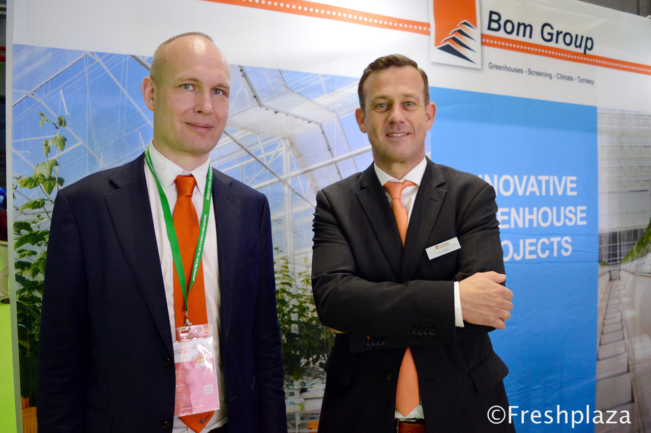 Fulco Wijdooge from Ridder visiting the booth of John Meijer from Bom Group. Bom Group is specialized in the supply, construction and installation of Venlo greenhouses, screen systems and climate systems for the glass horticulture sector, both at home and abroad. We export turnkey projects all over the world. 来自Ridder的Fulco Wijdooge与来自Bom Group的John Meijer在Bom Group展位。Bom Group是一家专业为国内外玻璃园艺行业提供、建造和安装Venlo温室、屏风系统和气候系统的公司。他们向全世界出口交付工程。