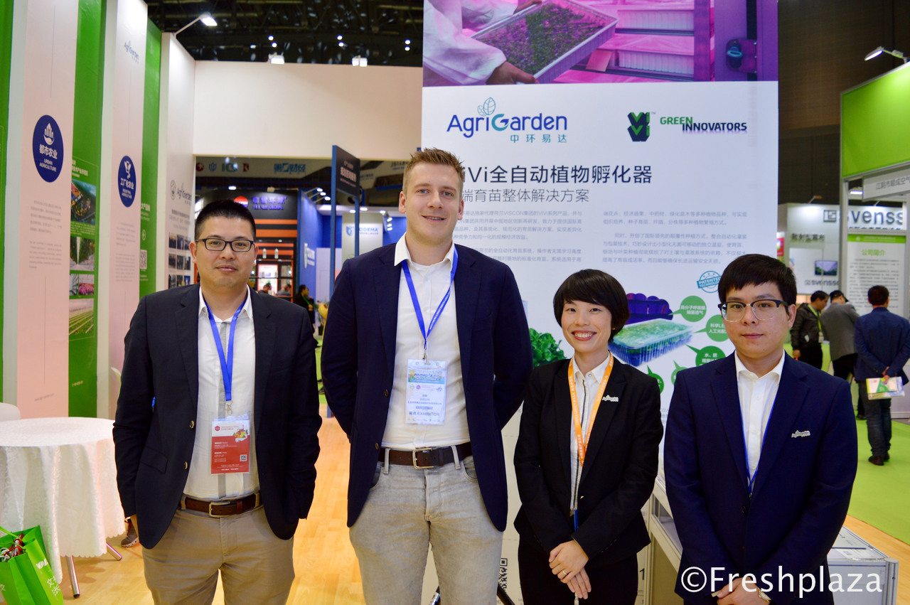 Adam Wang from Viscon China, Daan Mansveld from Vivi, Laurie and Minghong Li from AgriGarden. AgriGarden operates as a full service contractor. They participate in modern agriculture projects from the very beginning to the operation of the projects. 来自Vivi的Daan Mansveld,来自Viscon China的Adam Wang,来自AgriGarden的Laurie和Minghong Li。AgriGarden是一家全面服务承包商。他们从现代农业项目,从项目一开始就参与到运行中。