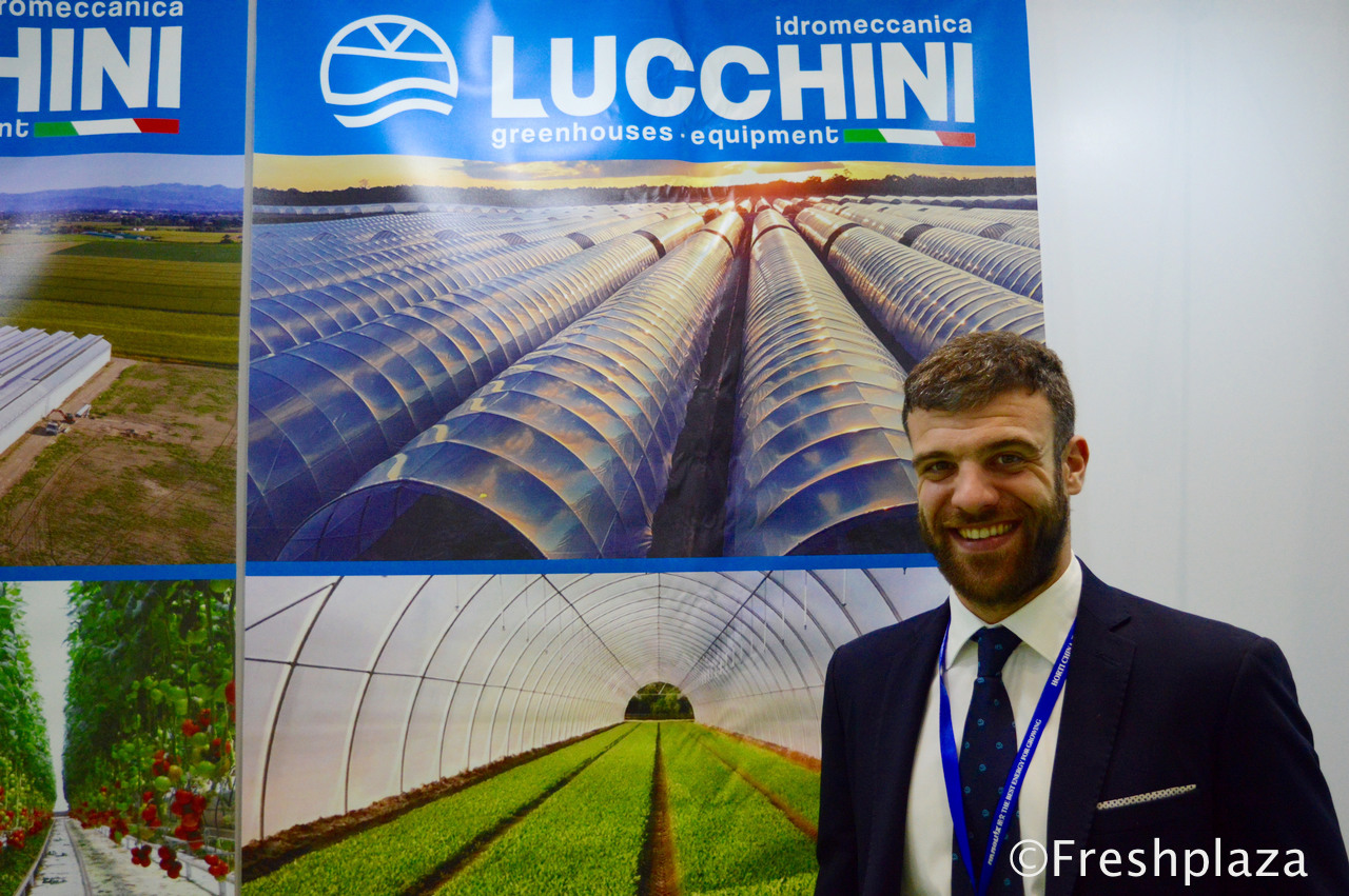 Matteo Lucchini from idromeccanica Lucchini. They are specialised in the production of greenhouses covered in plastic material for horticulture and floriculture, complete with the most advanced irrigation and heating systems with computerized control. 来自Idromeccanica Lucchini的Matteo Lucchini。他们专门生产园艺和花卉用塑料覆盖的温室,配有最先进的计算机控制灌溉和加热系统。