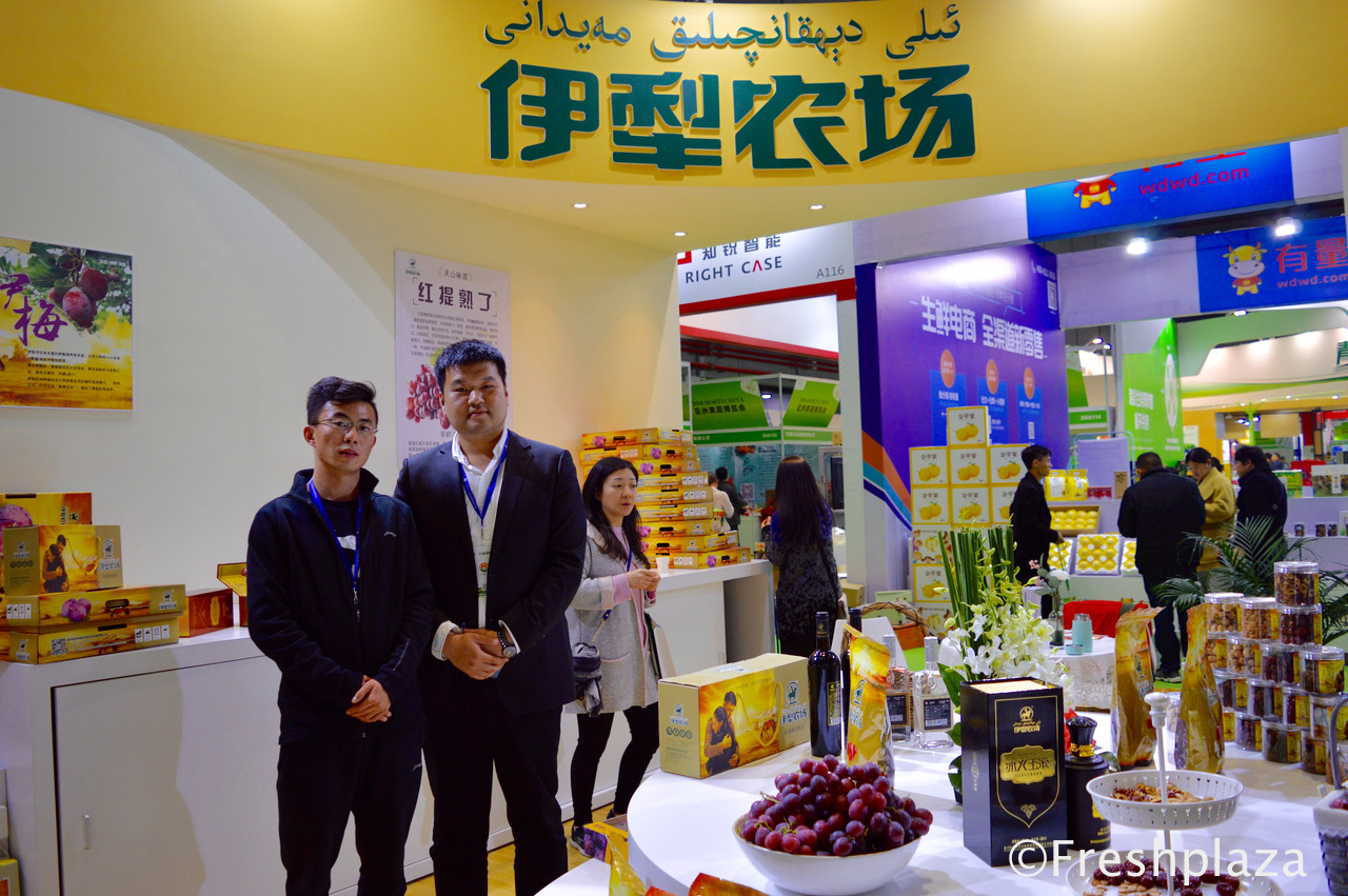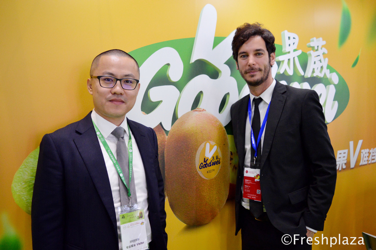 Harry Xu and Federico Milanese of Italian Jingold kiwi fruit. 意大利Jingold猕猴桃Harry Xu and Federico Milanese。