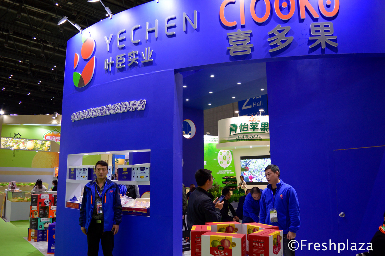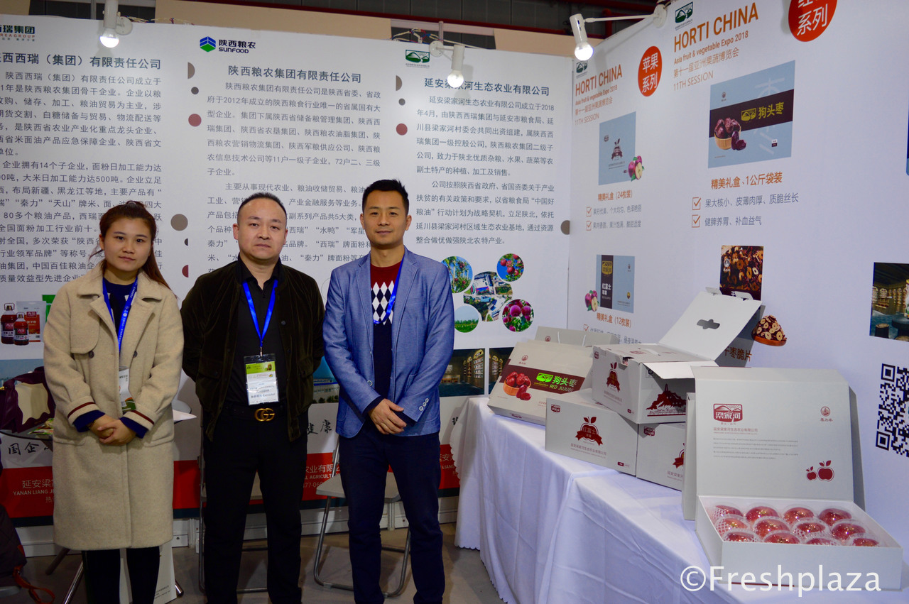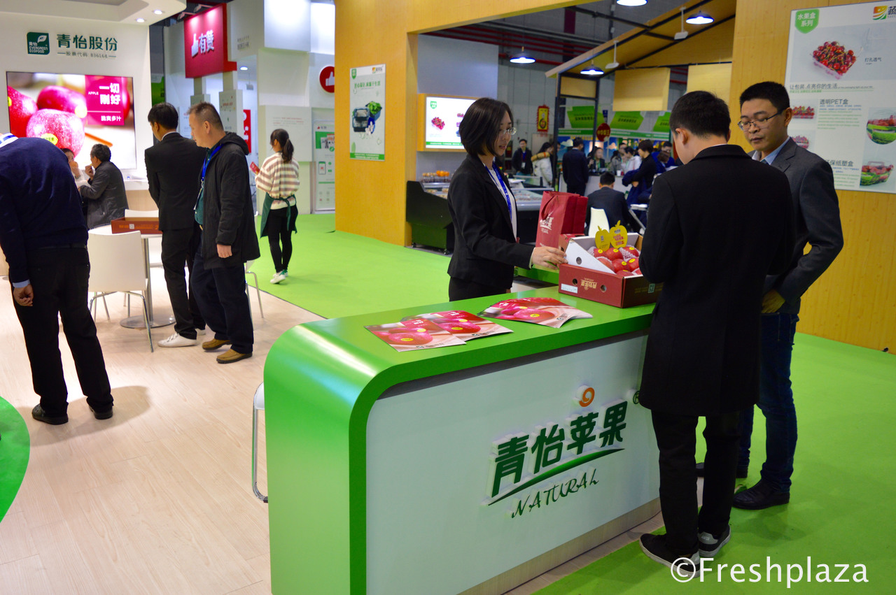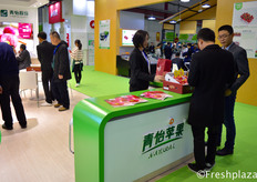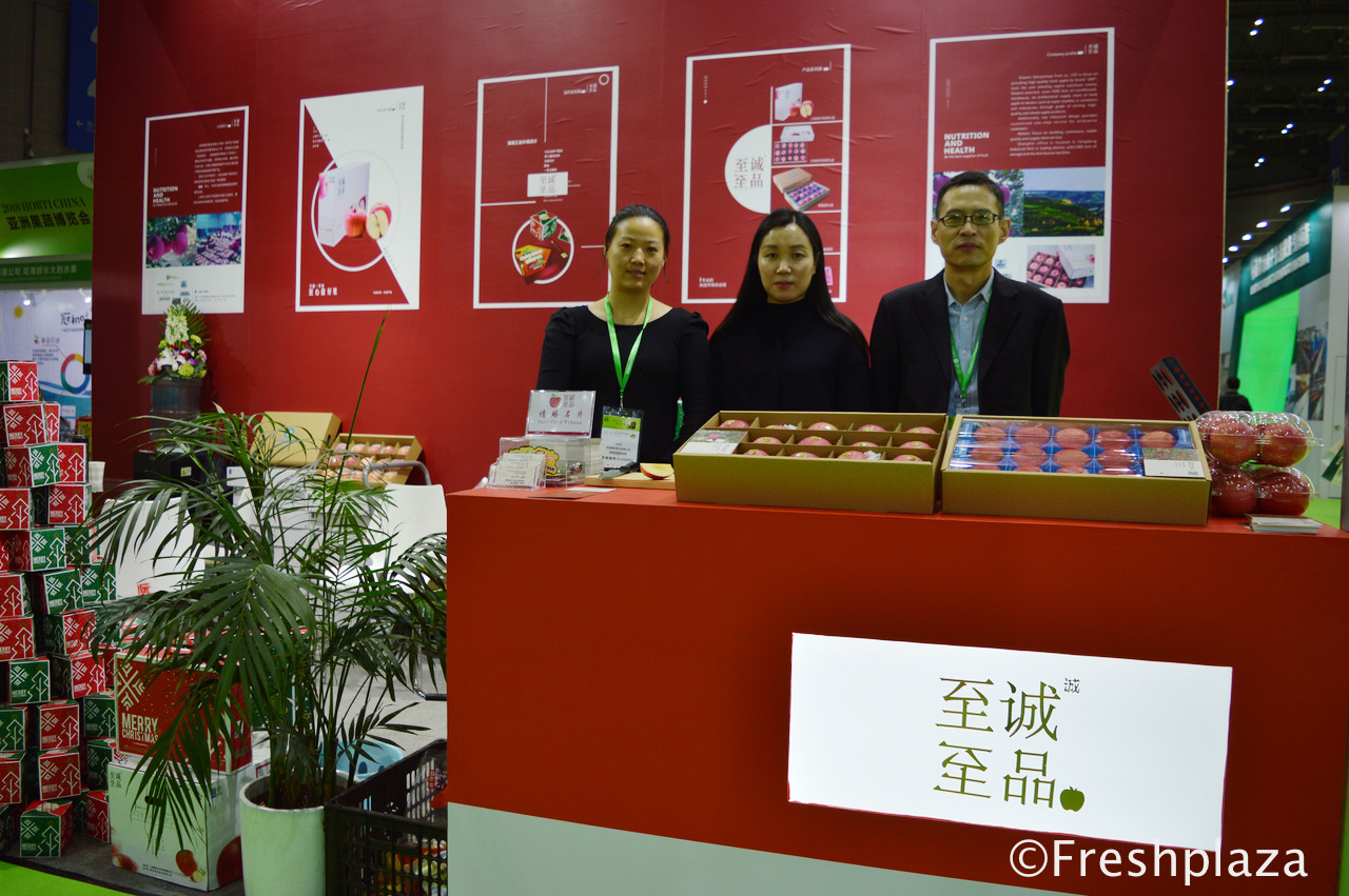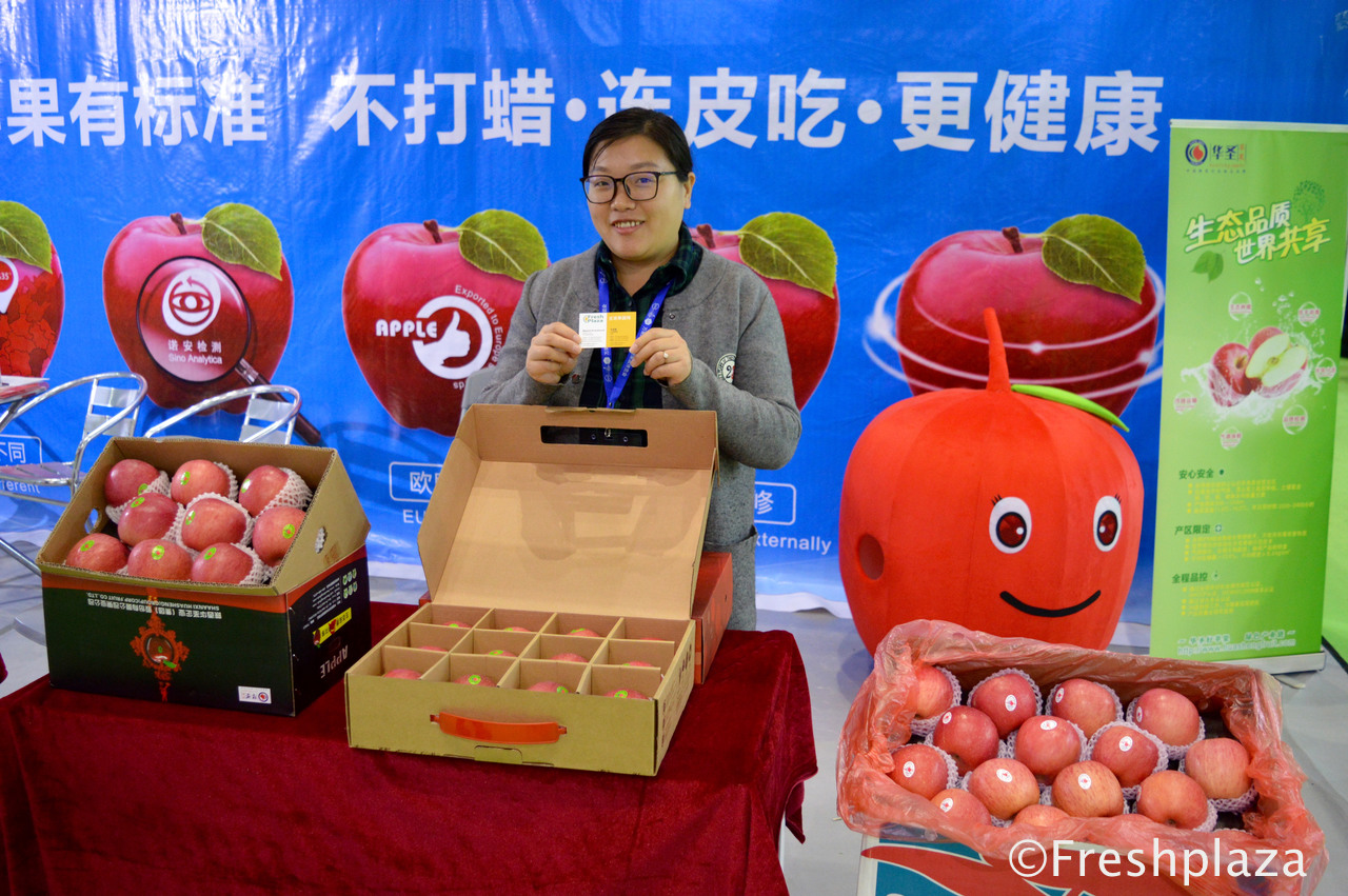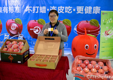 Evergreen Ecofood, presenting their Qingyi apples. 青怡股份正在展示他们的青怡苹果