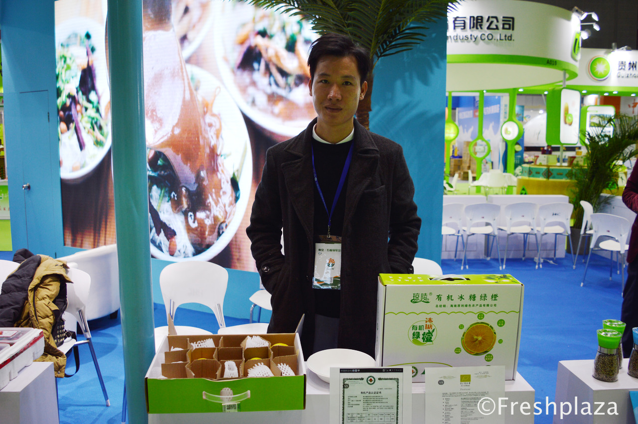 Hainan Houli Green Agricultural Products Company with their organic green sugar orange. 海南厚利绿色农产品有限公司与他们的有机冰糖绿橙