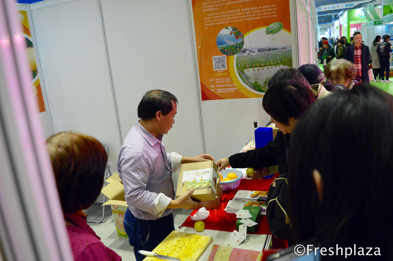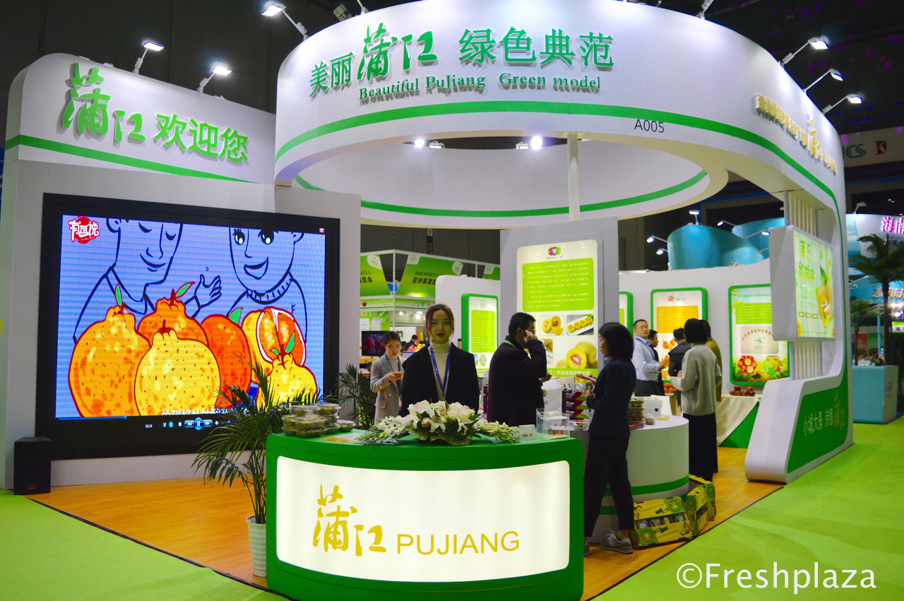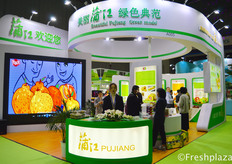 The booth of Beautiful Pujiang Green Model. Presenting their kiwi fruit. 美丽浦江绿色典范的展位,他们正在展示他们的猕猴桃