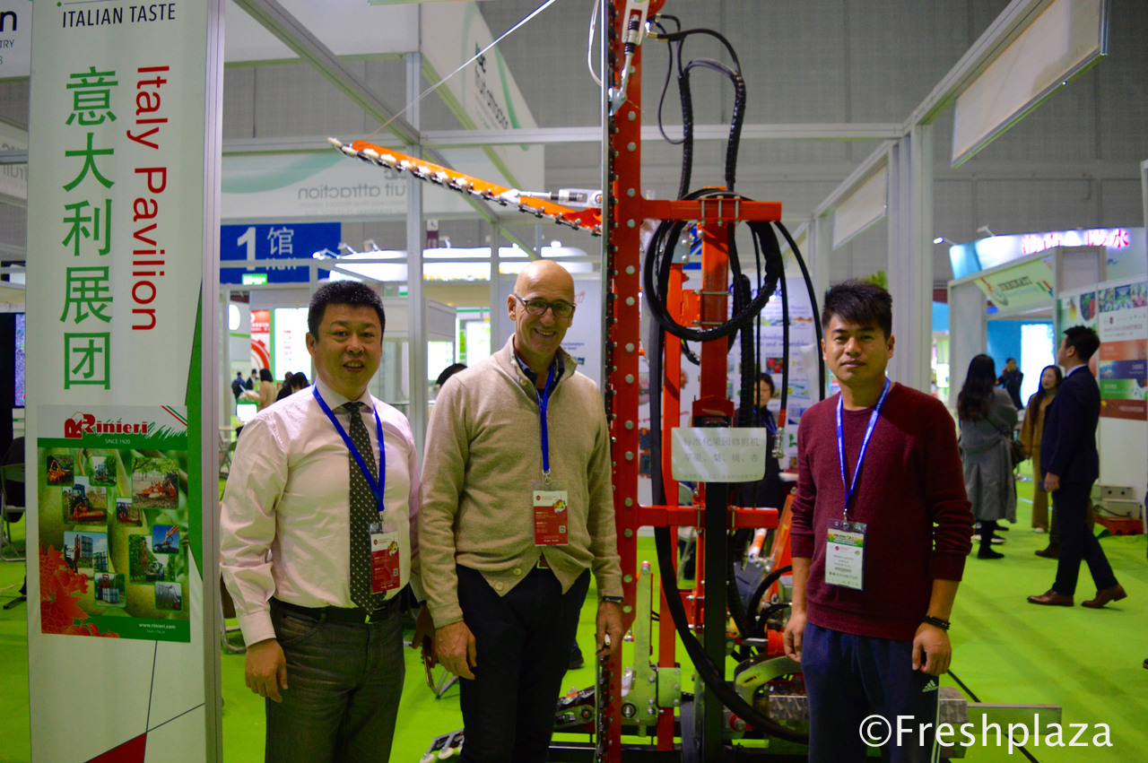Steven Deng from Irrigateur AGM (PEK) and Mauro Masoni with team from Rinieri S.R.L. They specialise in agricultural machinery for vineyards and orchards. 邓晓钟来自北京易润佳灌溉设备有限公司和Mauro Masoni和来自Rinieri S.R.L.的团队,他们专门从事葡萄园和果园的农业机械运营。
