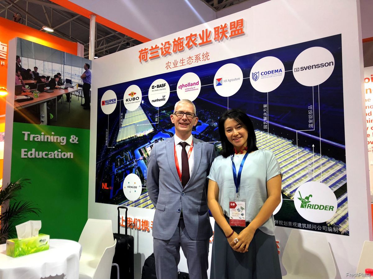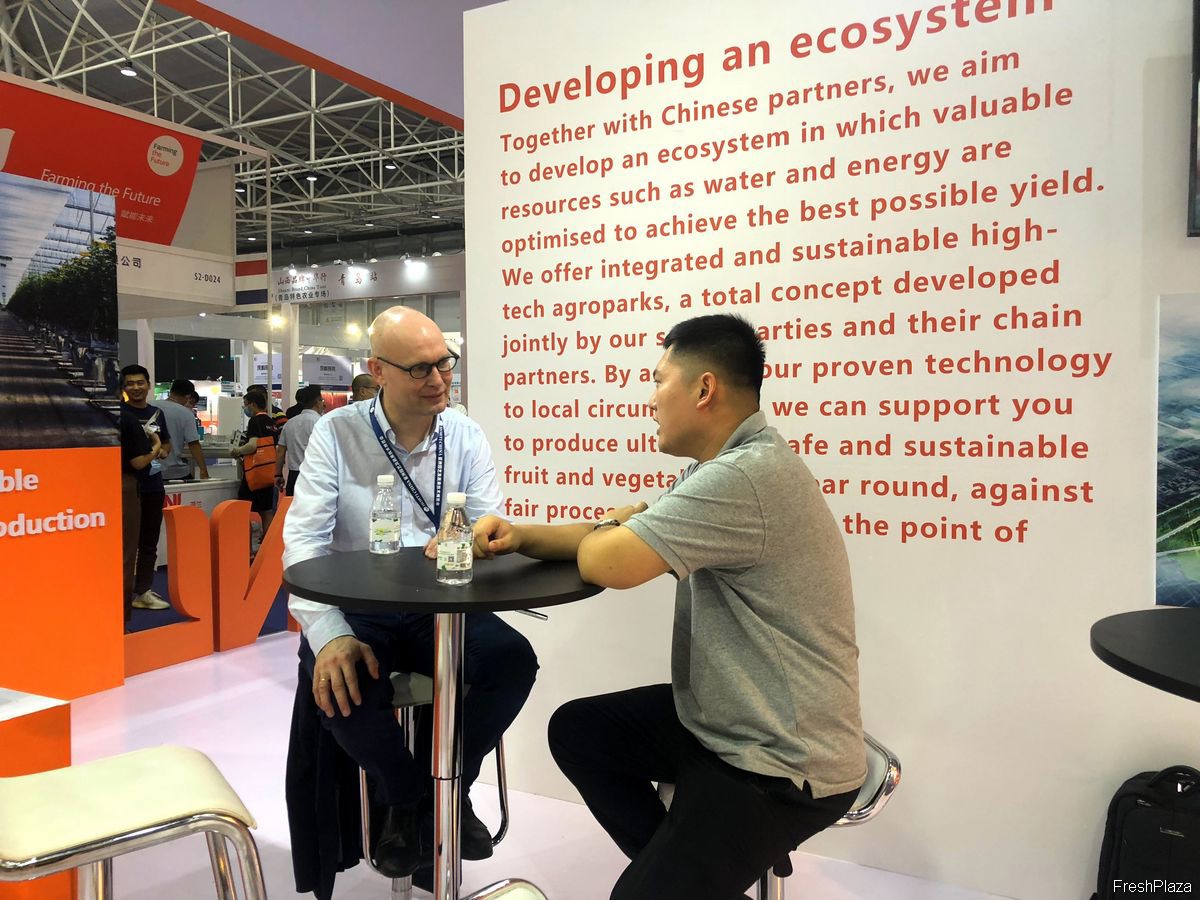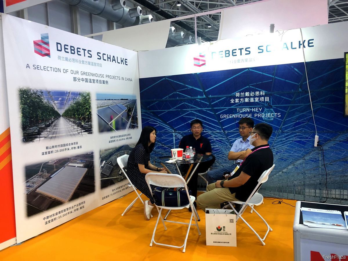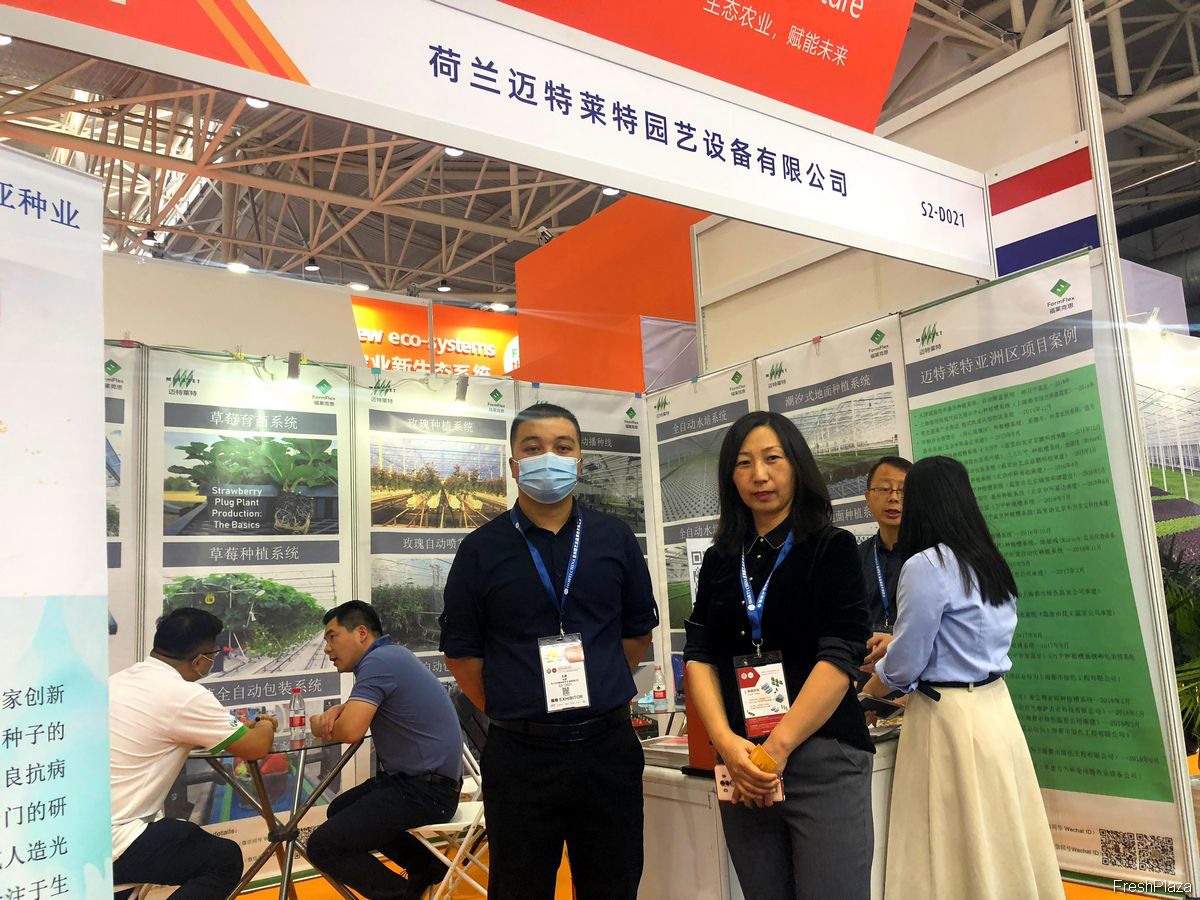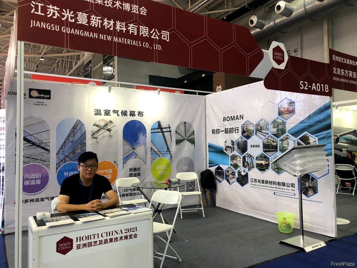 Planti公司的总经理李相勇先生(右二)带领团队参展。Planti公司的玻璃产品全部用于出口。“虽然已经预料到疫情期间的展会的国外访客或许少于正常情况,但我们认为在这个行业中,面对面的交流非常重要,因此还是很高兴能与来到这次展会。”除了推广自己的Planti品牌玻璃外,李经理今年参展还有一个目的,那就是首次作为荷兰公司、世界领先的温室开窗系统和拉幕系统供应商,万德沃克(Van Der Valk)公司的在华经销商,向国内企业介绍万德沃克的系统。”