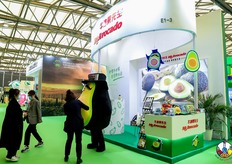 牛油果先生的展台前,牛油果人偶与访客进行互动。