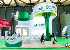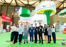 吉果瞬达公司的参展代表在展台前合影留念。