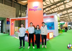 祥果公司的参展代表在展台前合影留念。