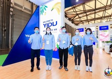 毅都公司的代表在展台前合影留念。