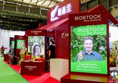 来自百果园的参展代表在展台前合影留念。