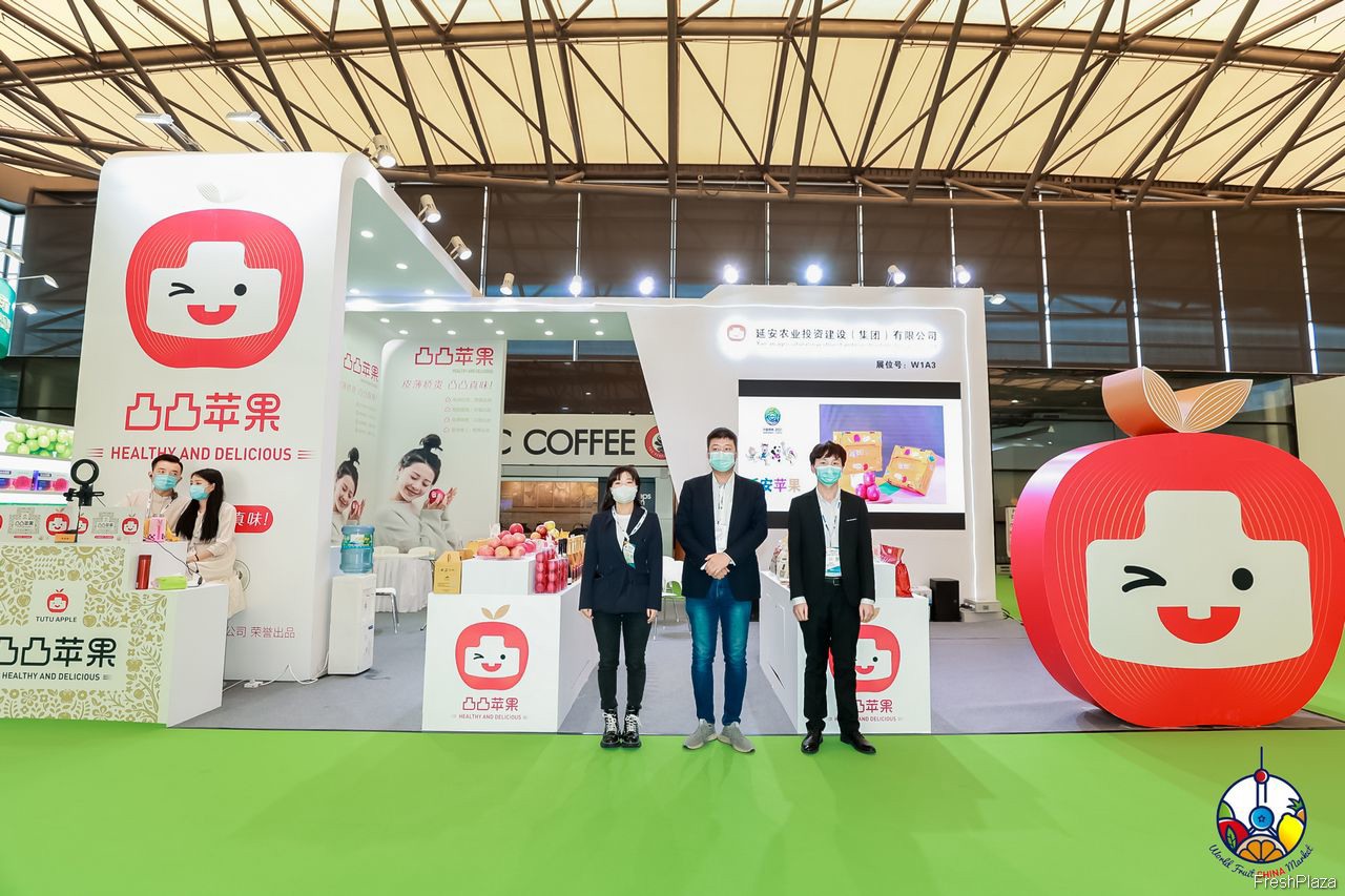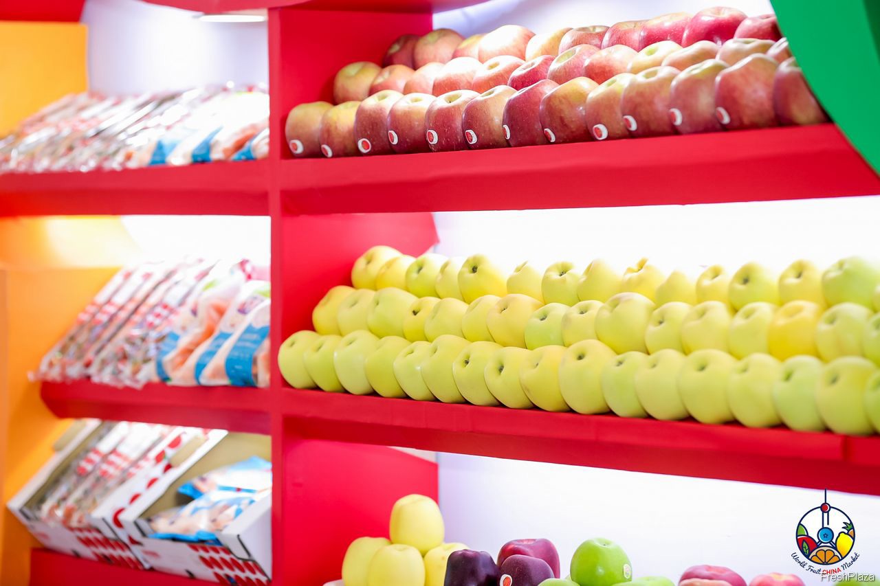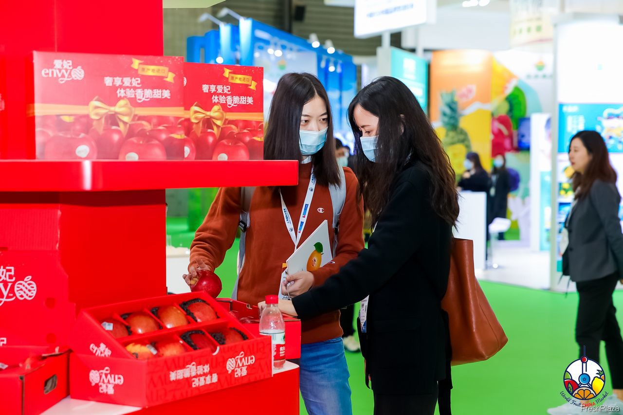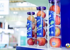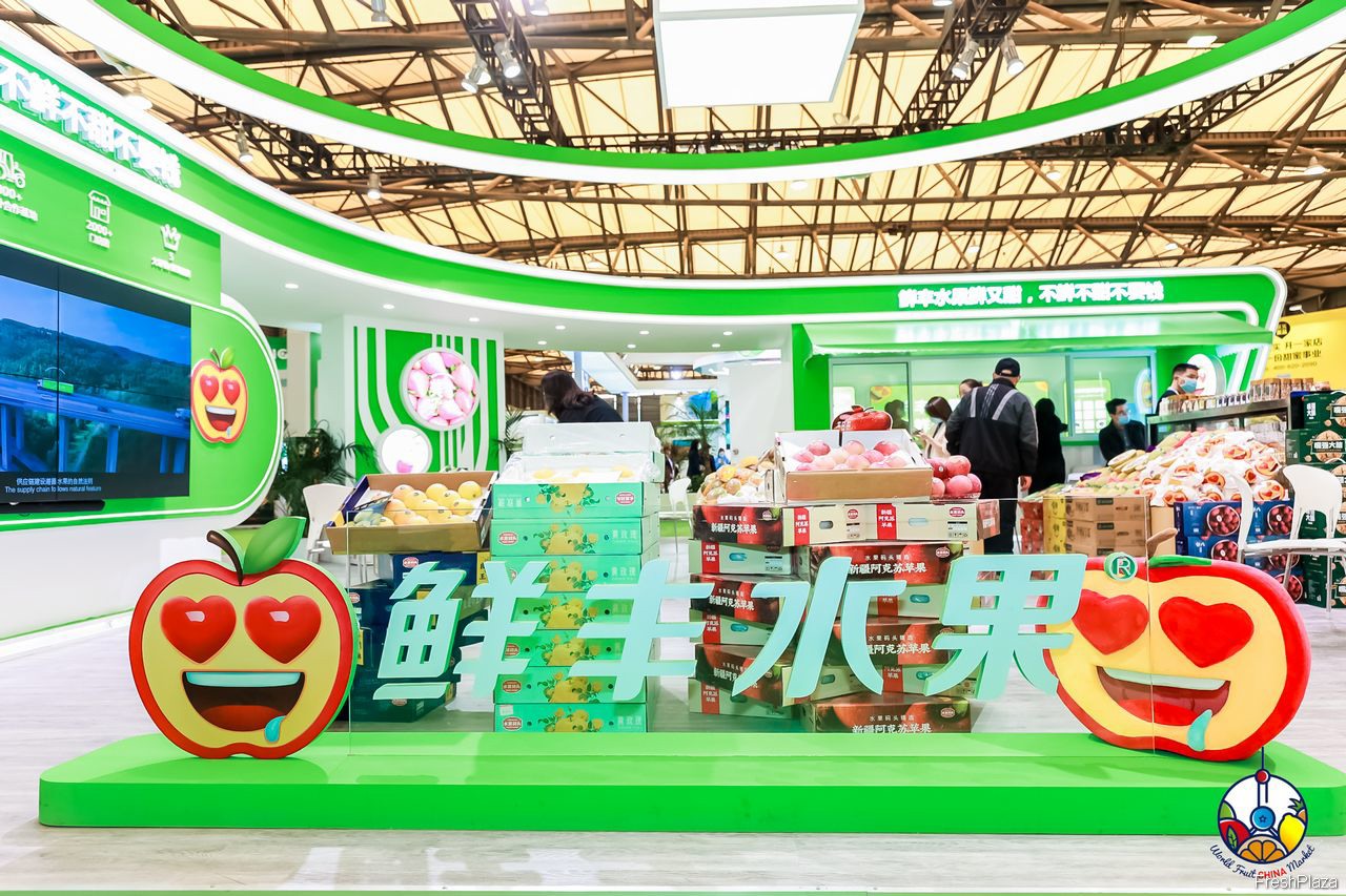 鲜丰水果带来了新疆阿克苏苹果、黄玫瑰苹果等多种特色水果参展。